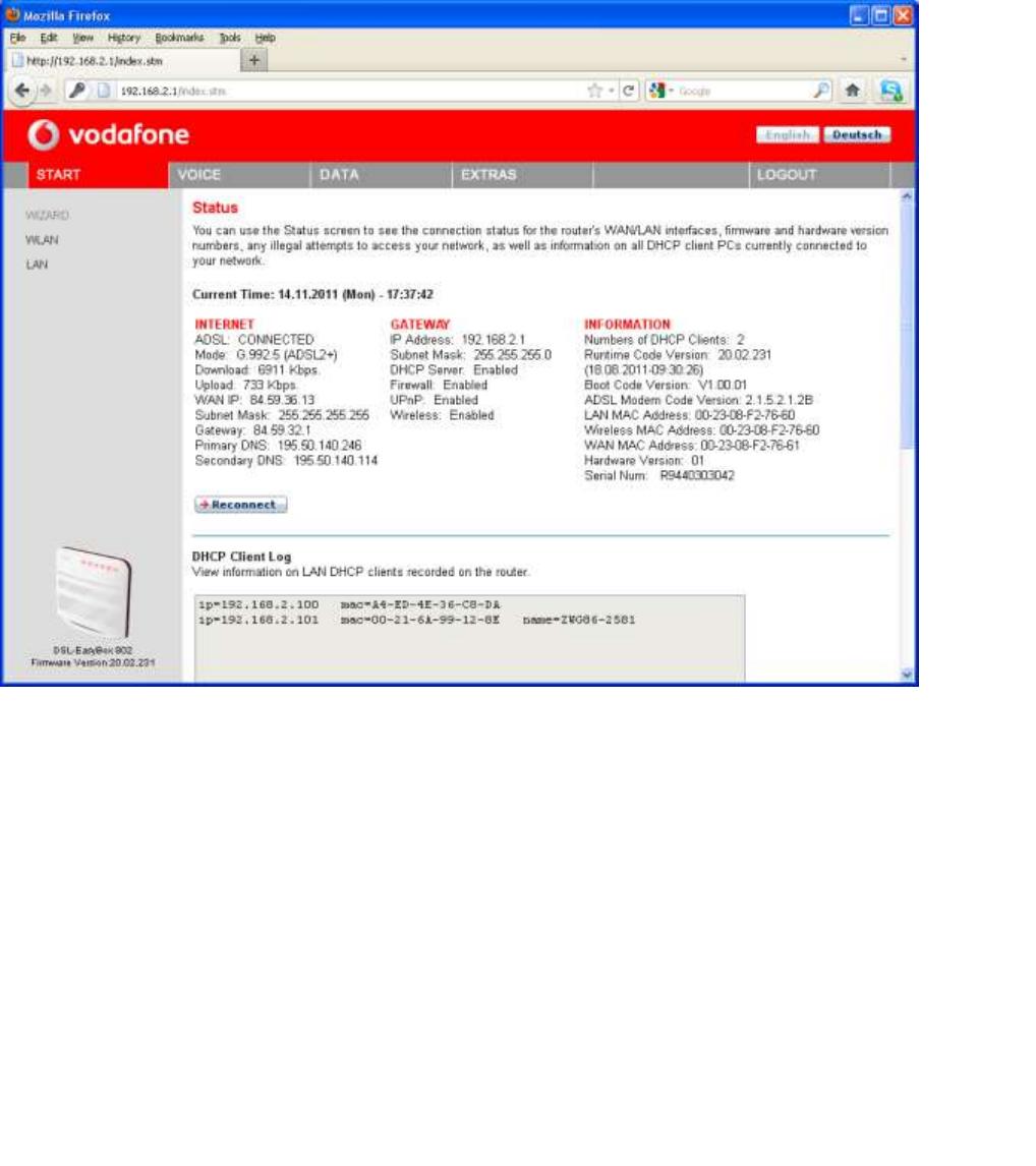 using ADSL and provides connectivity for several computers via Ethernet and WiFi. The ADSL