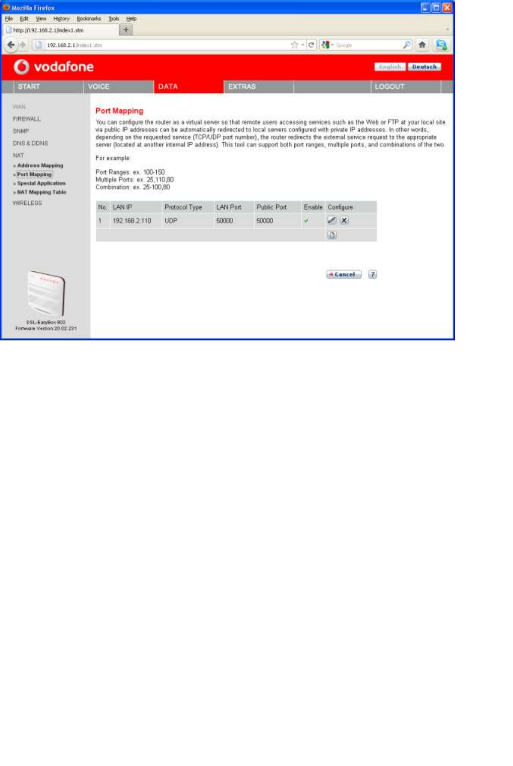 The above screenshot shows how the UDP port would be mapped in the ADSL Router. The above