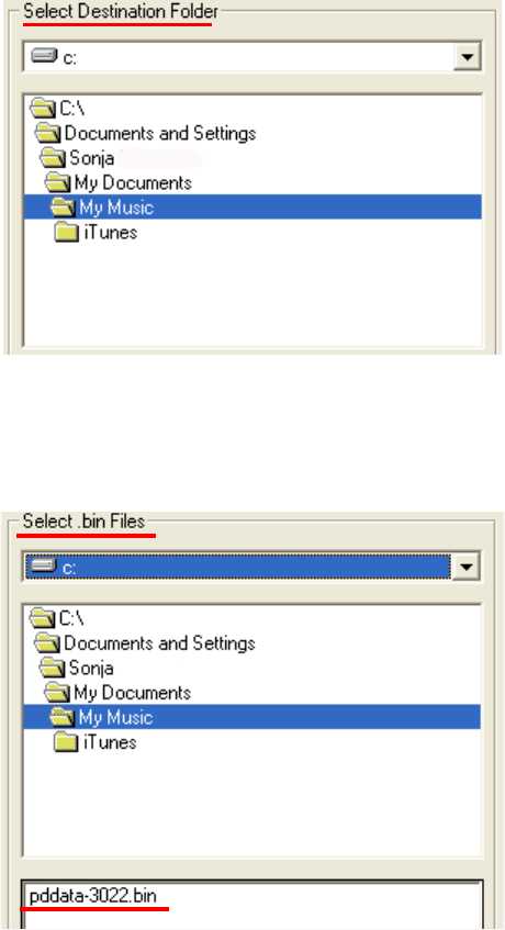 4. Under Select .bin files (left pane), navigate to your My Music folder and