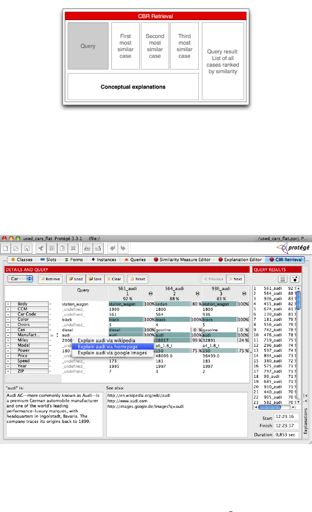 Three different kinds of explanation are delivered by myCBR:Conceptual expla-