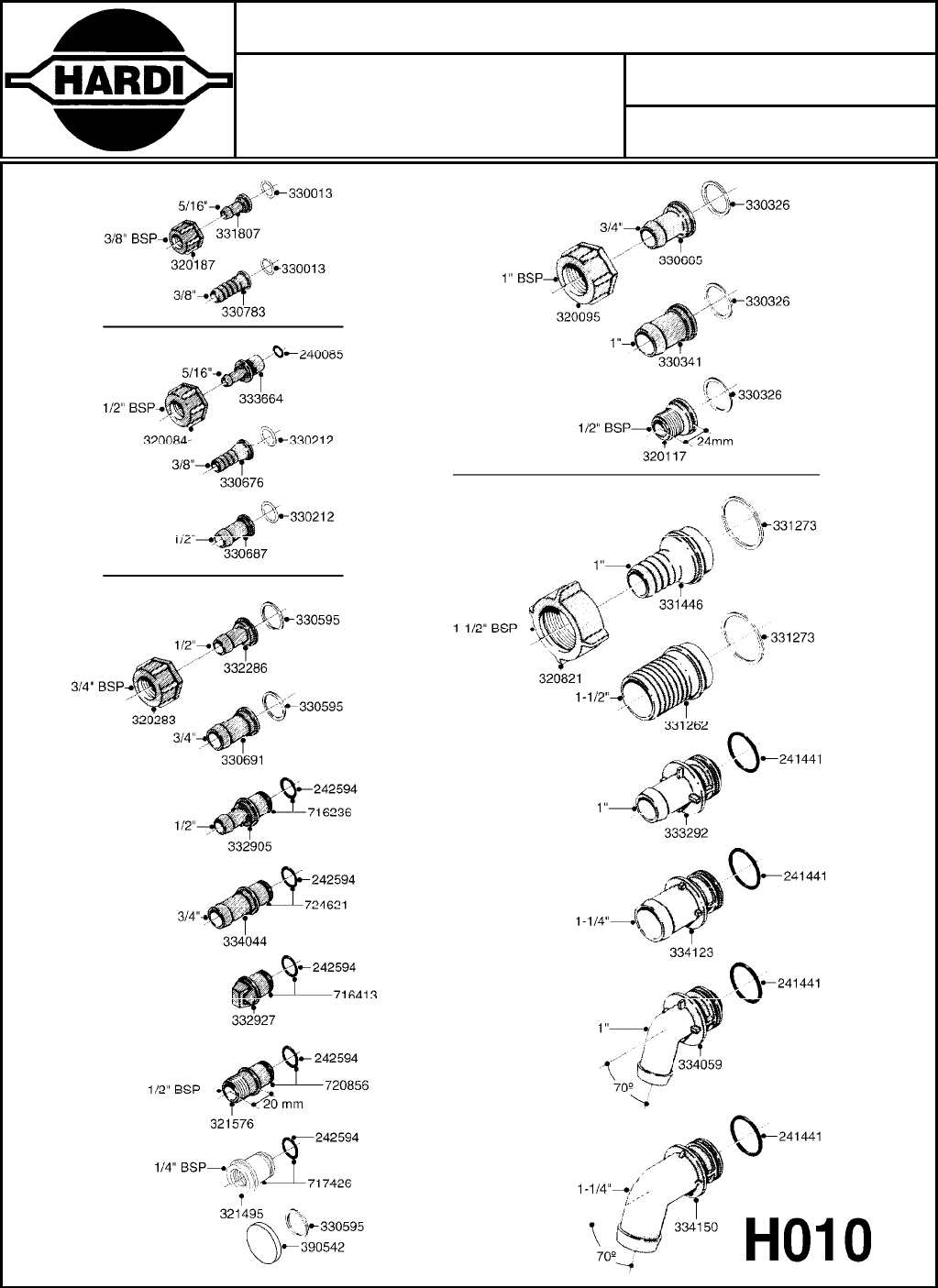 - H010-HIN: FITTINGS-CAP NUTS & HOSE BARBS