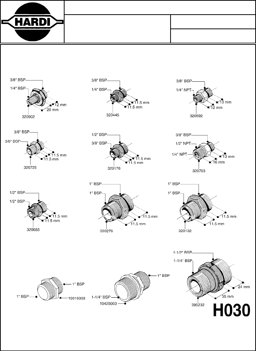 - H030-HIN: FITTINGS - HEXAGON NIPPLES