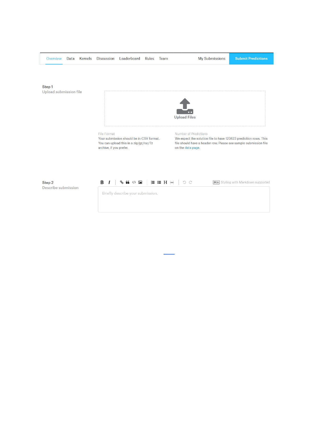 Overview, Data, Kernels, Discussion, Leaderboard, Rules, Team)