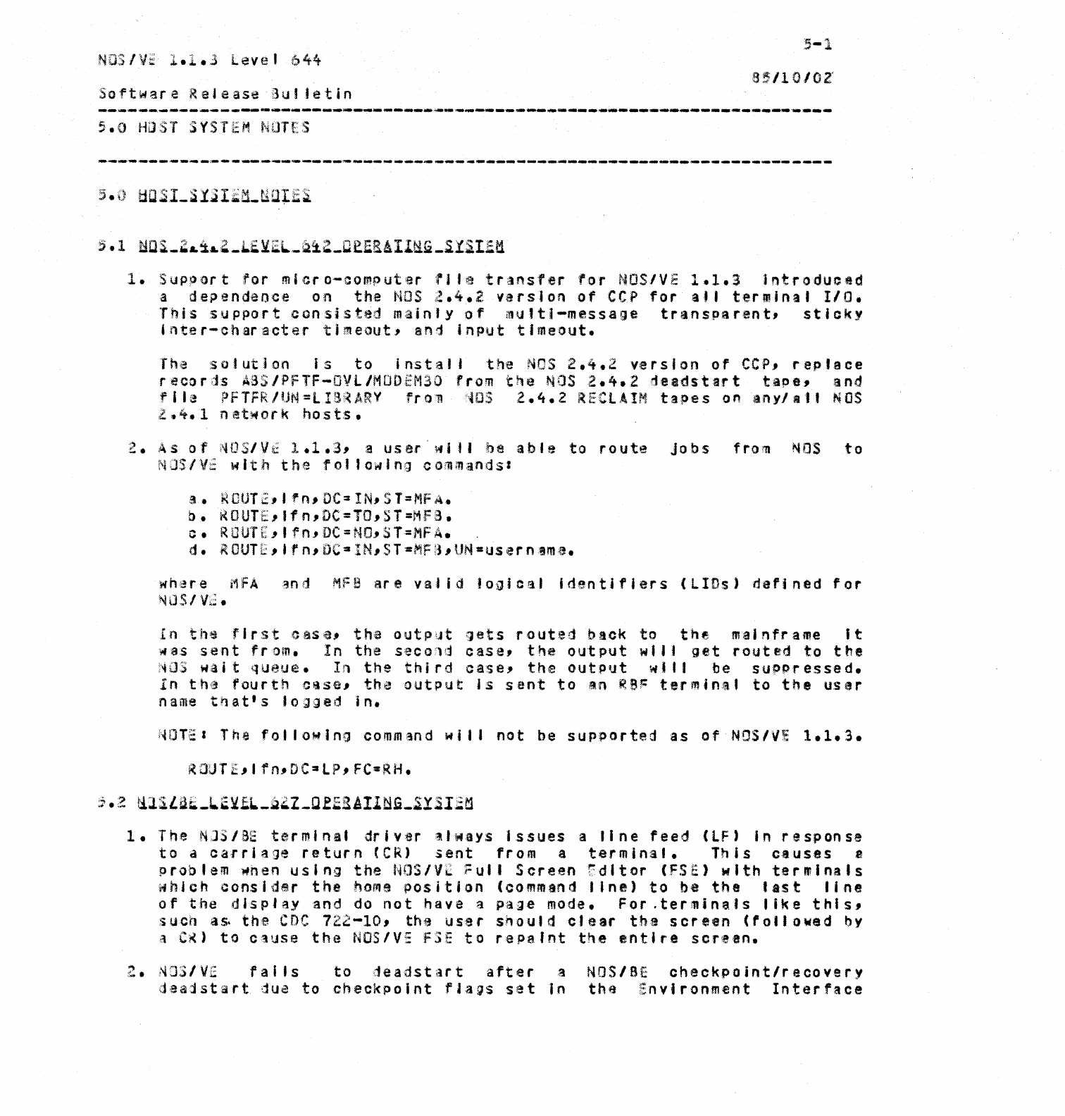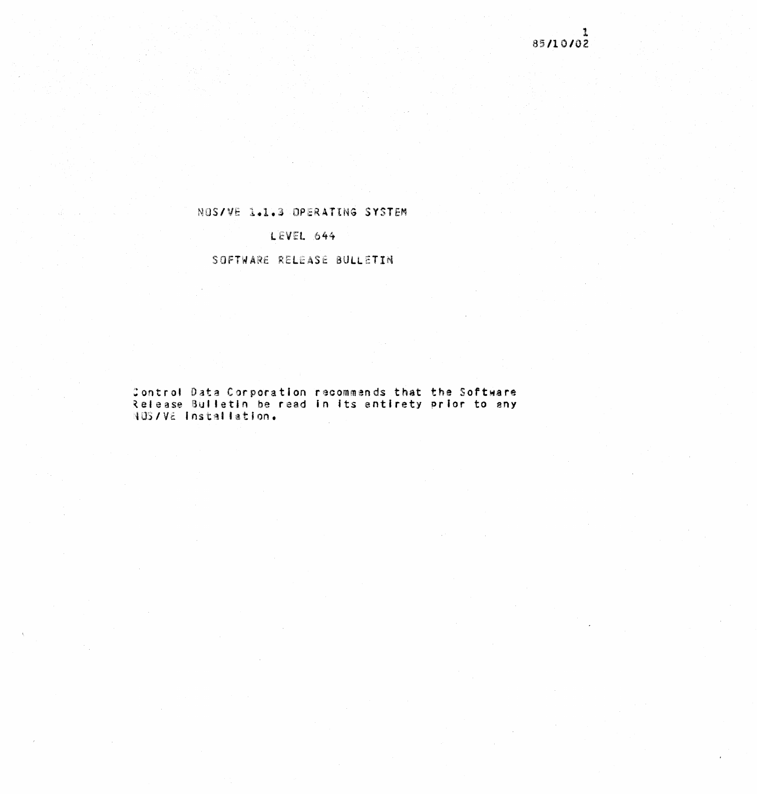 NOS_VE_1.1.3_Level_644_Software_Rel_Bulletin_Oct85 NOS VE 1.1.3 Level 644 Software Rel Bulletin Oct85