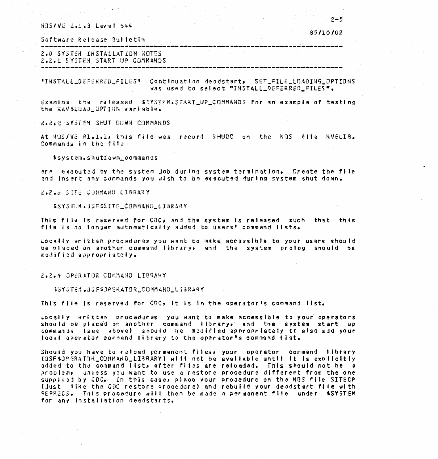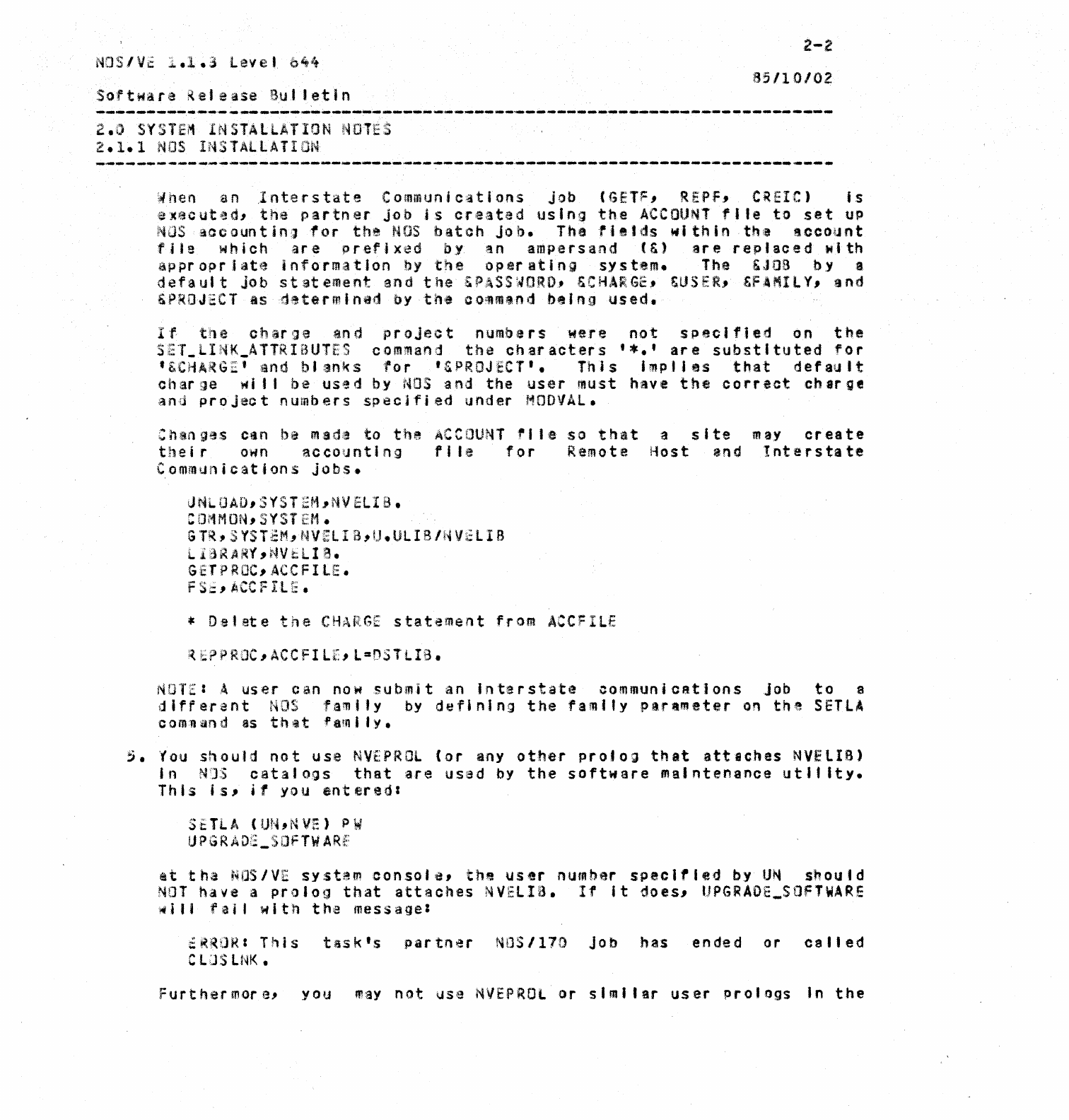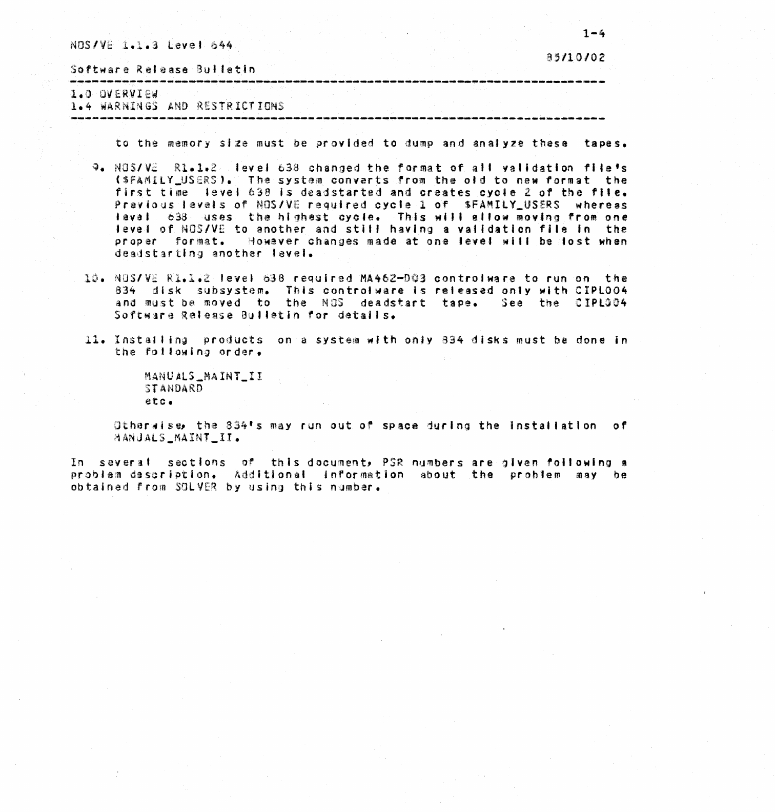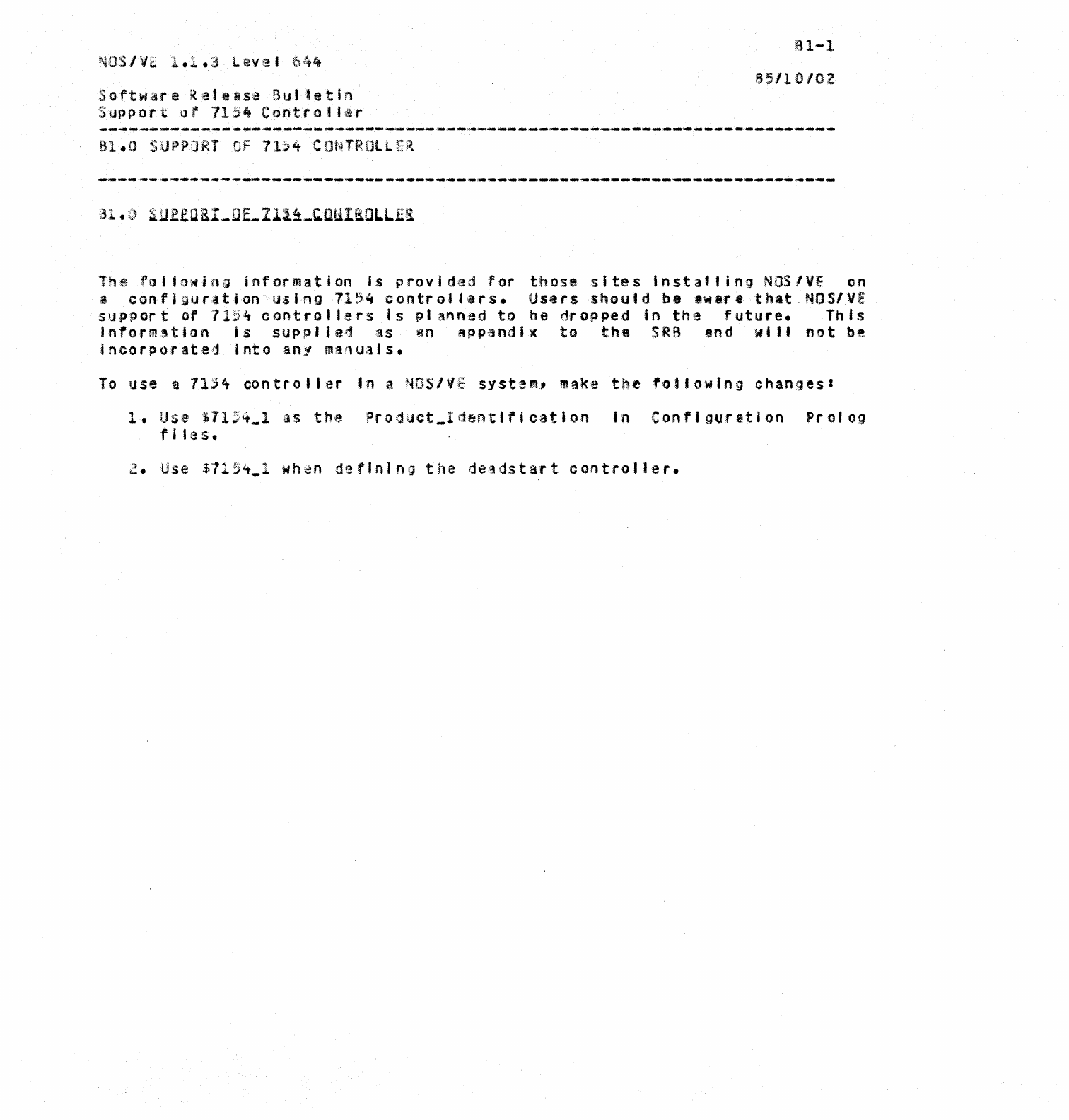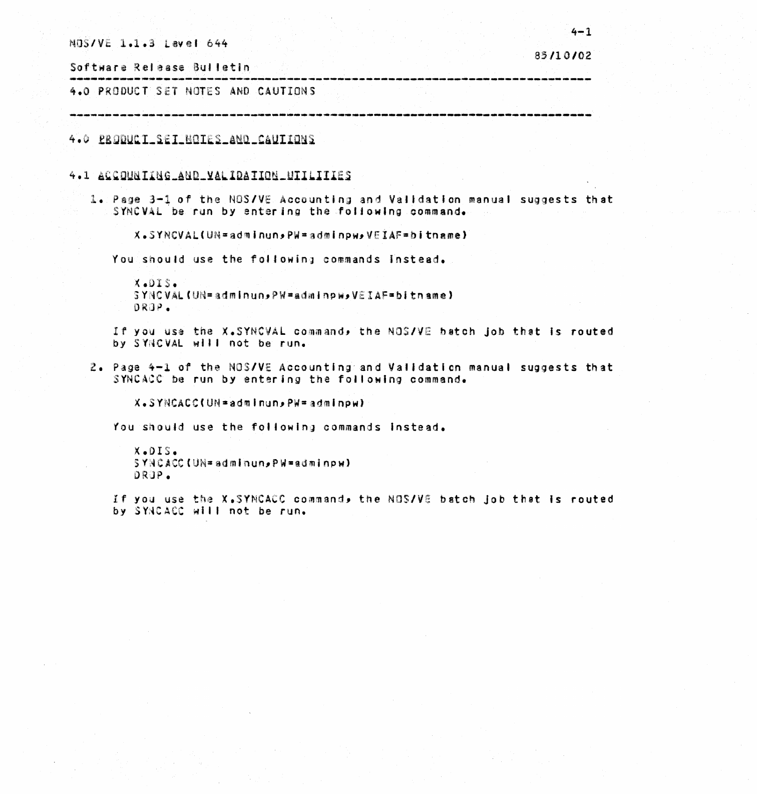 User Manual: NOS_VE_1.1.3_Level_644_Software_Rel_Bulletin_Oct85