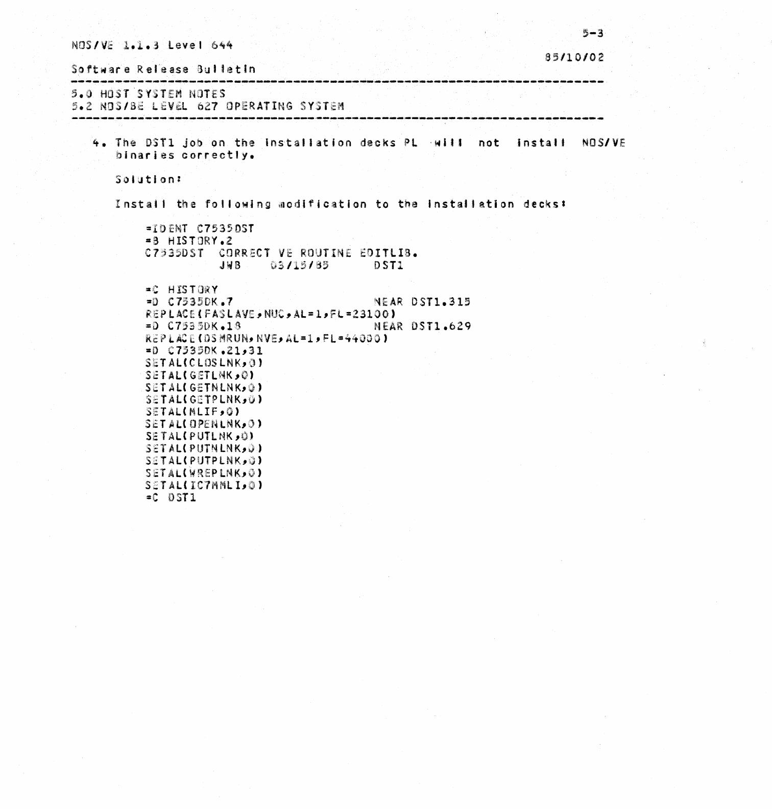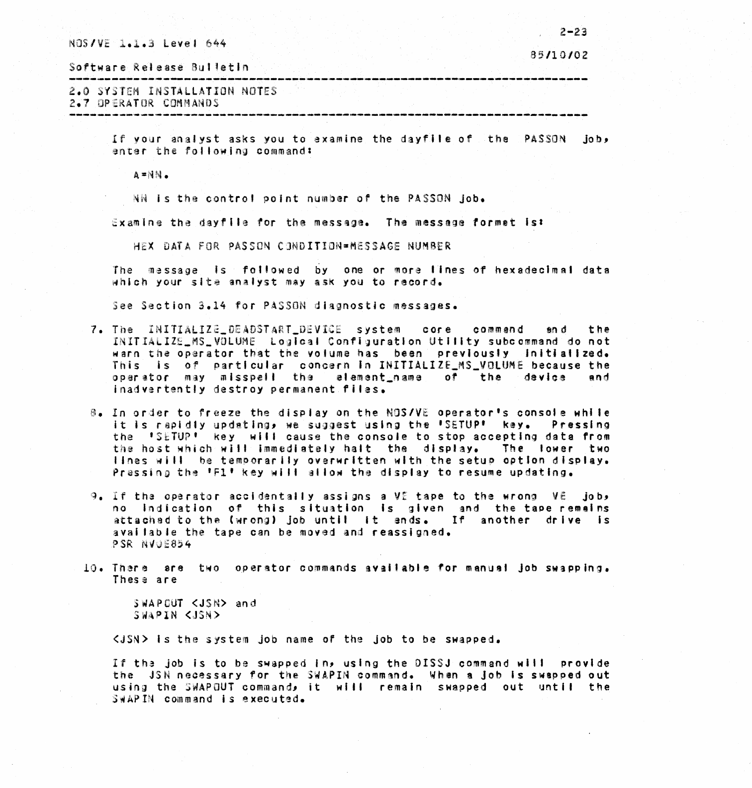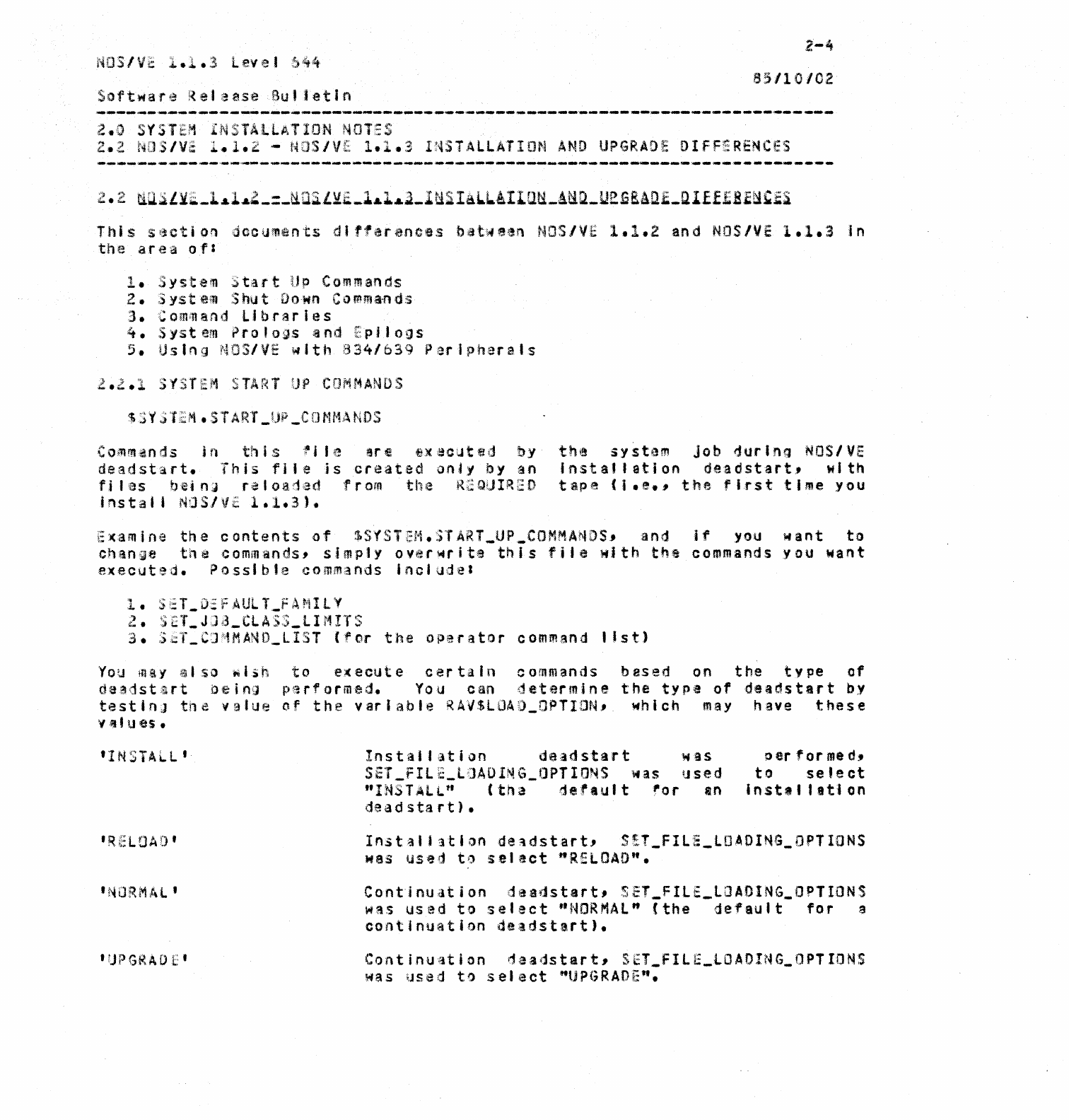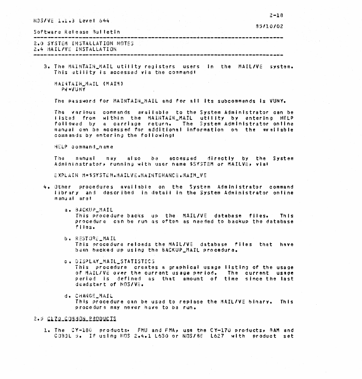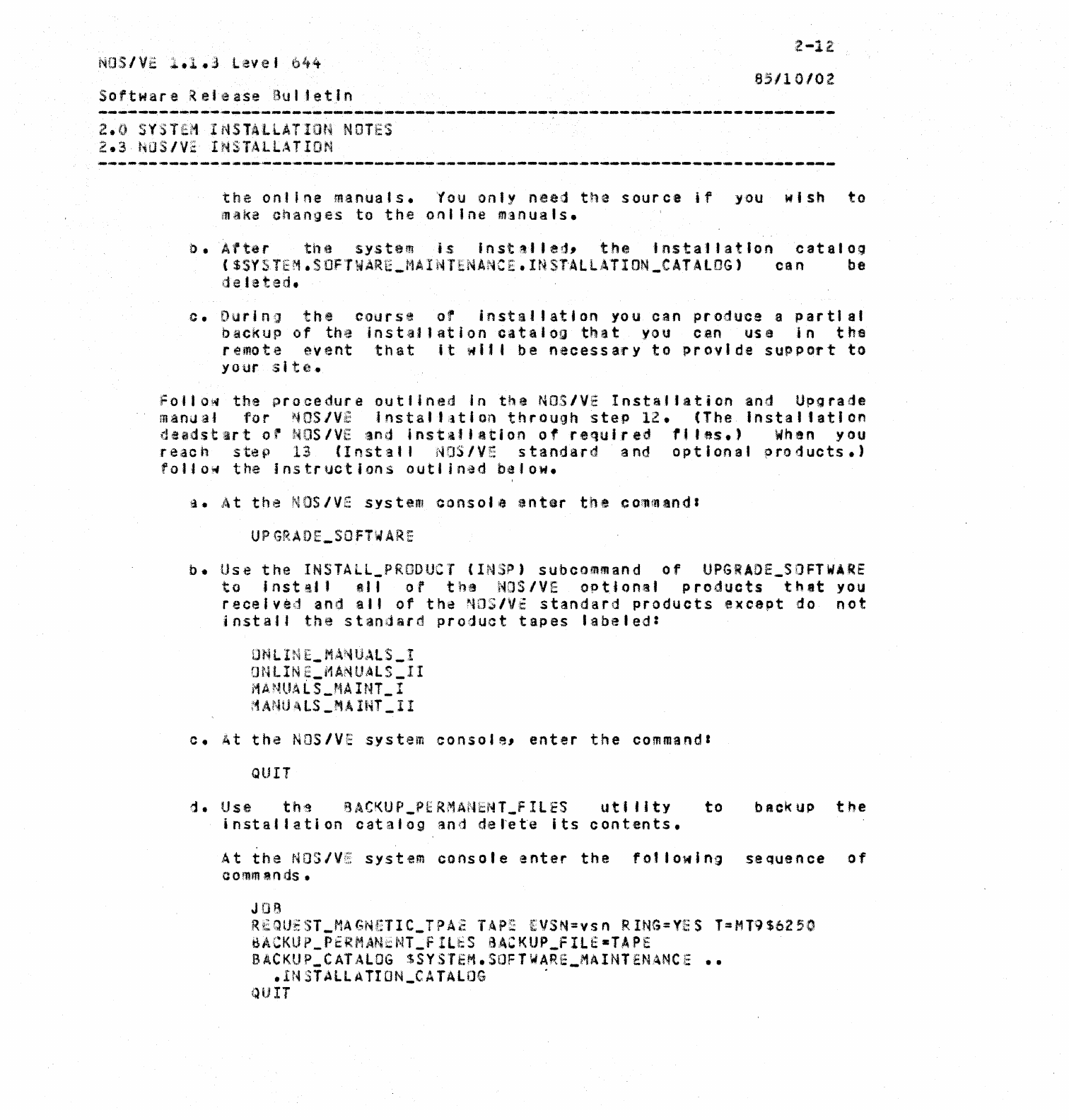 User Manual: NOS_VE_1.1.3_Level_644_Software_Rel_Bulletin_Oct85