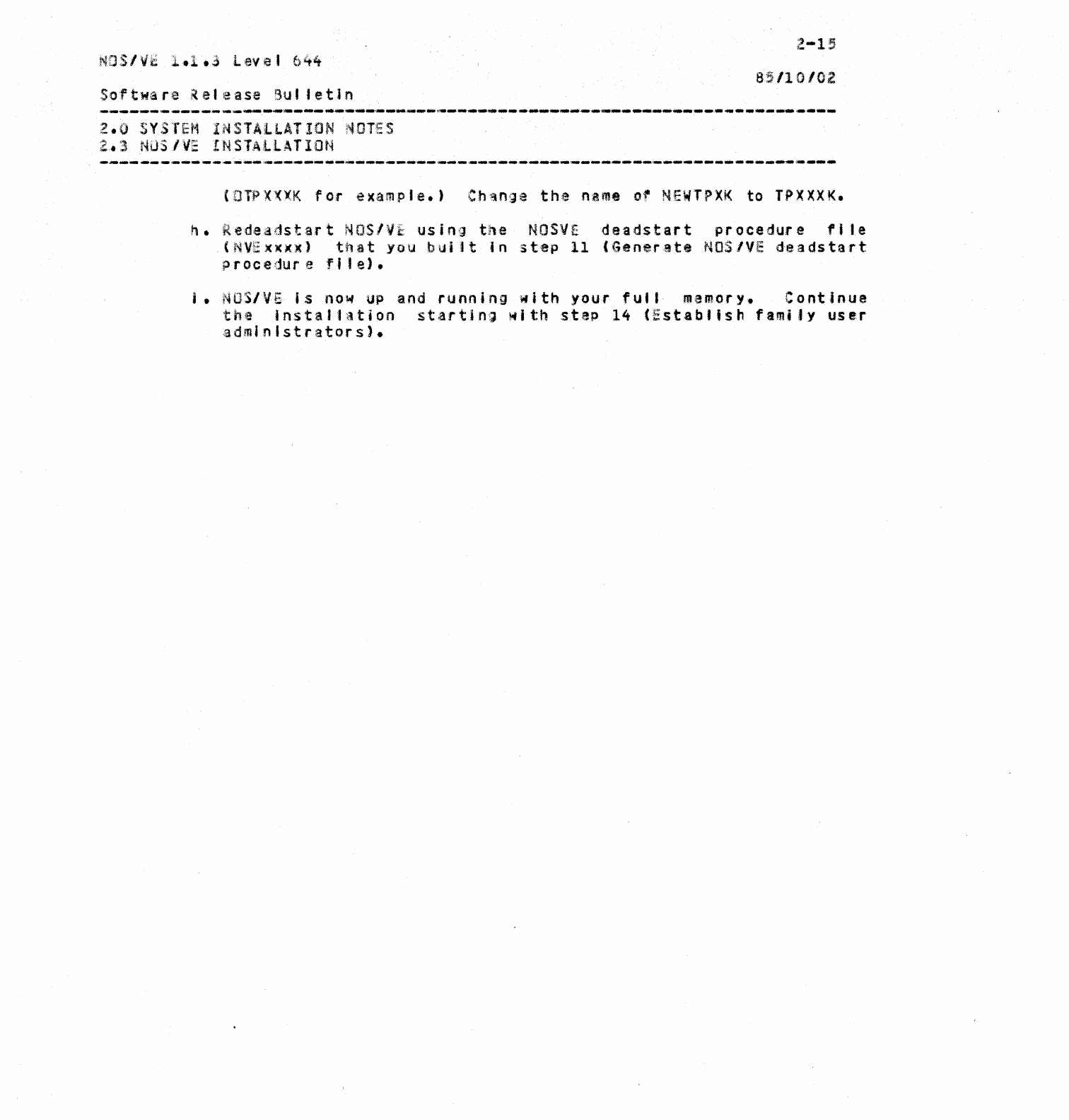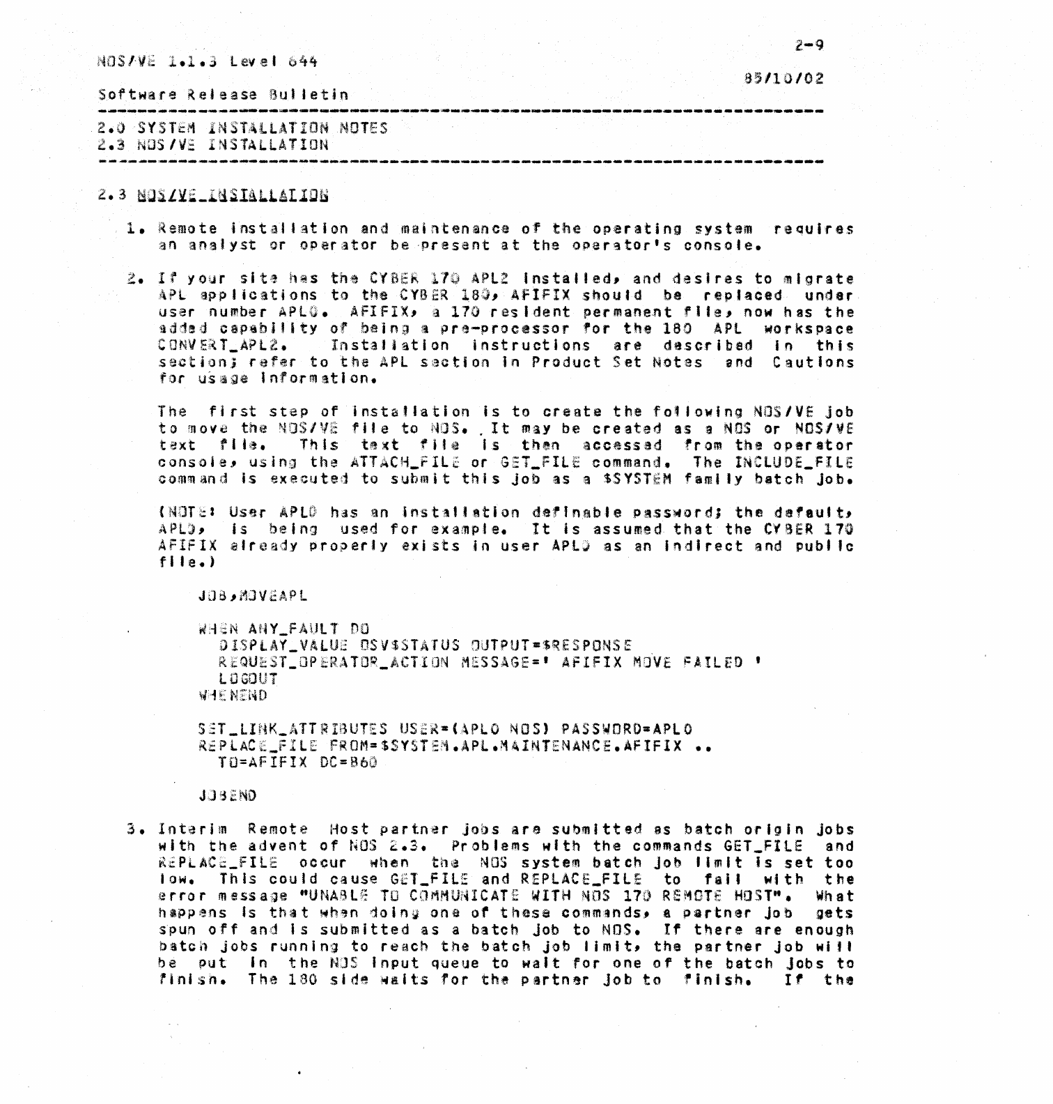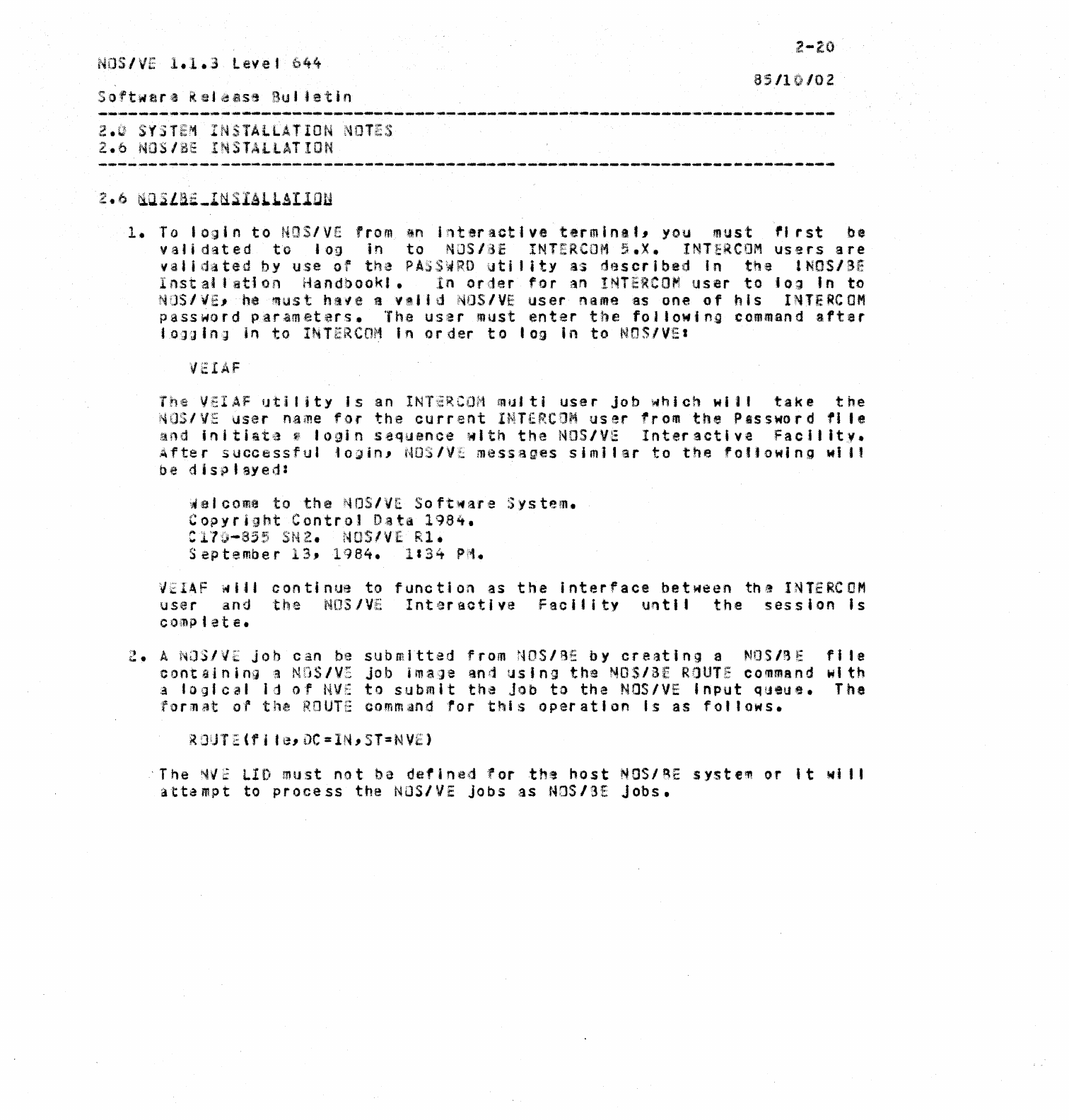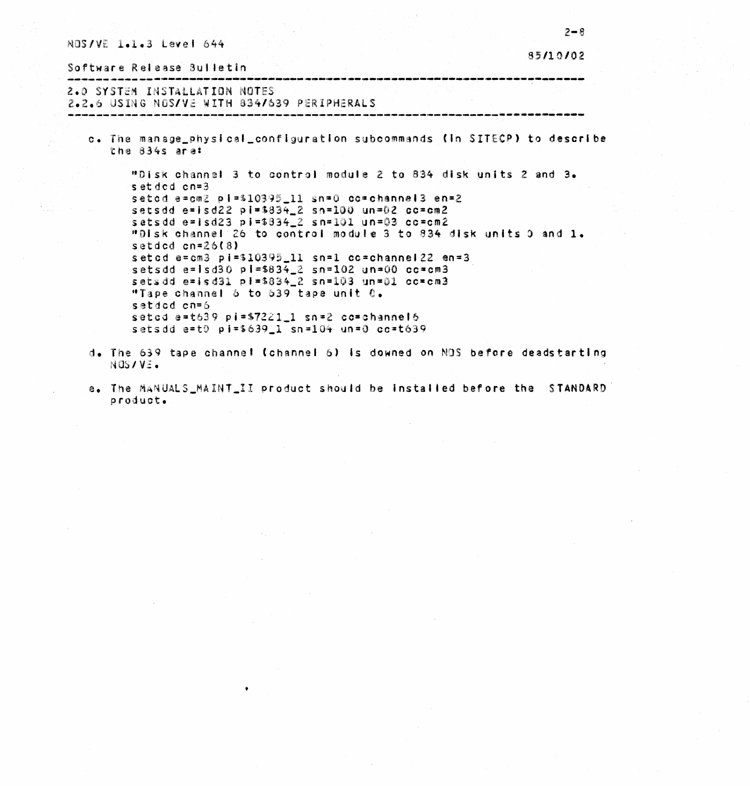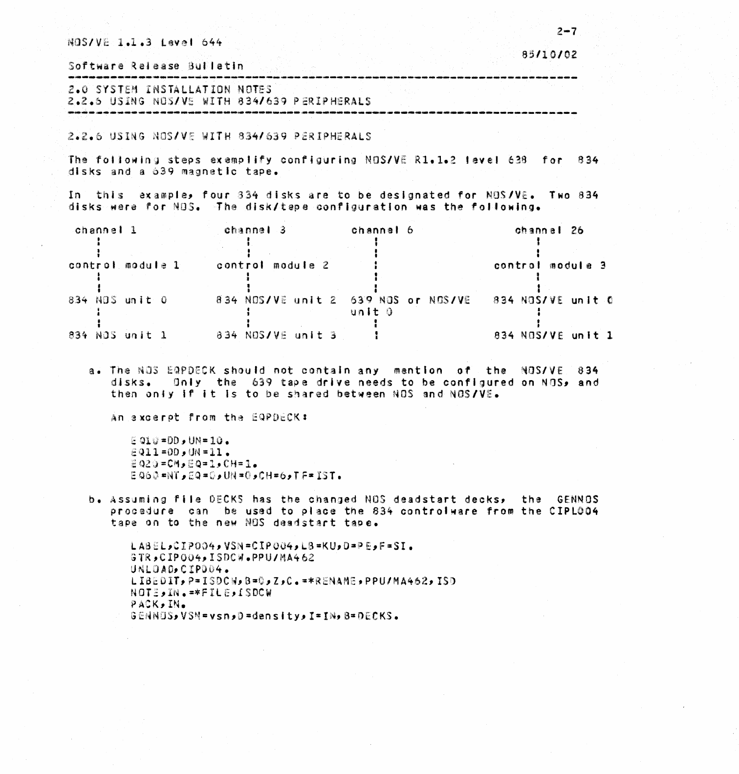 User Manual: NOS_VE_1.1.3_Level_644_Software_Rel_Bulletin_Oct85