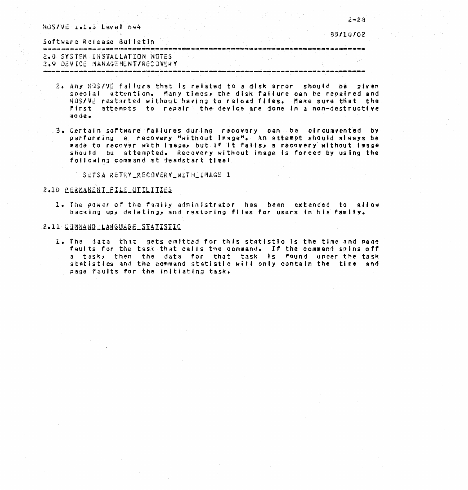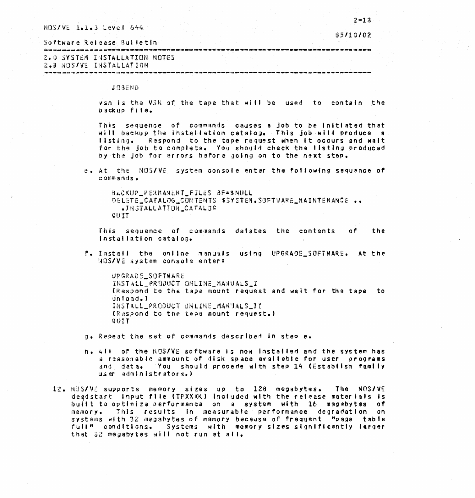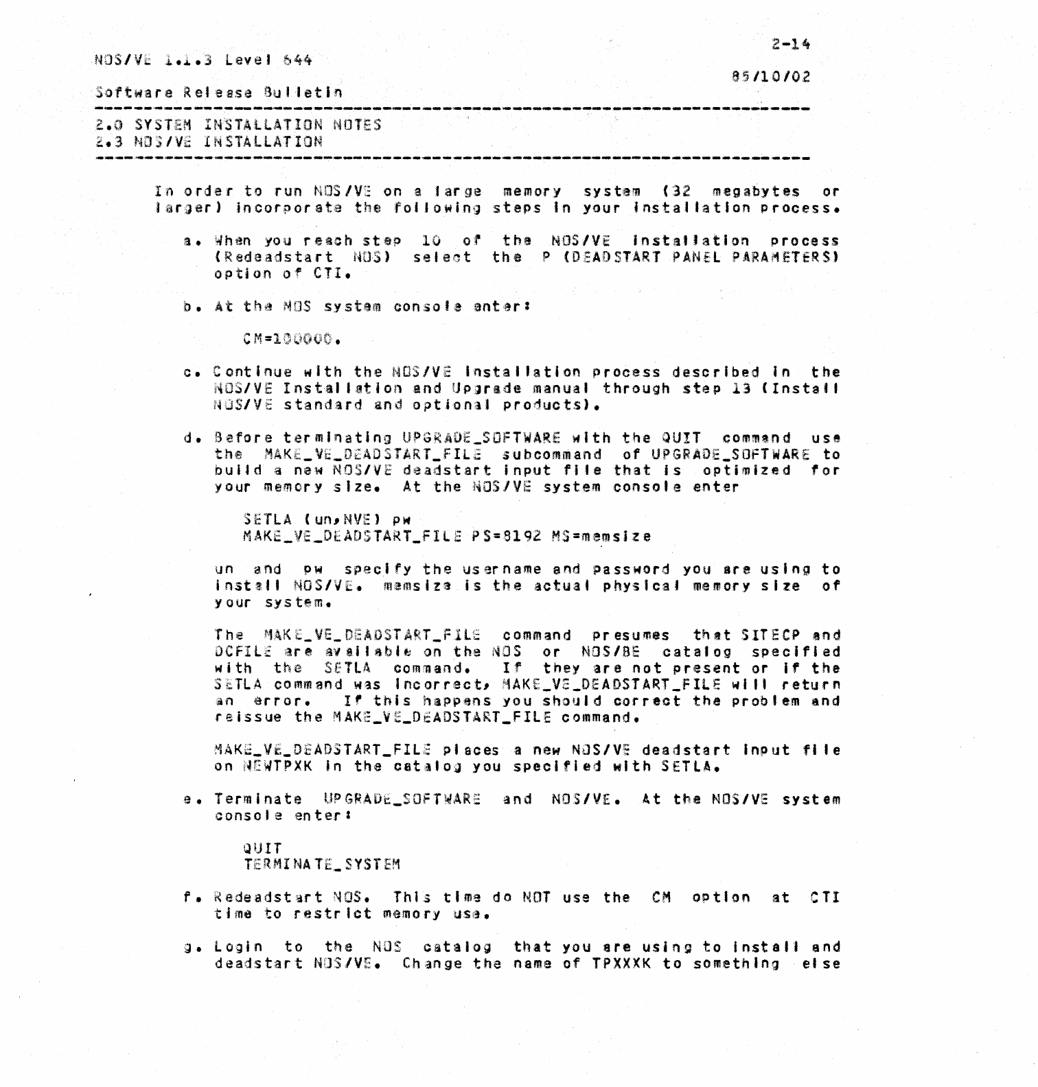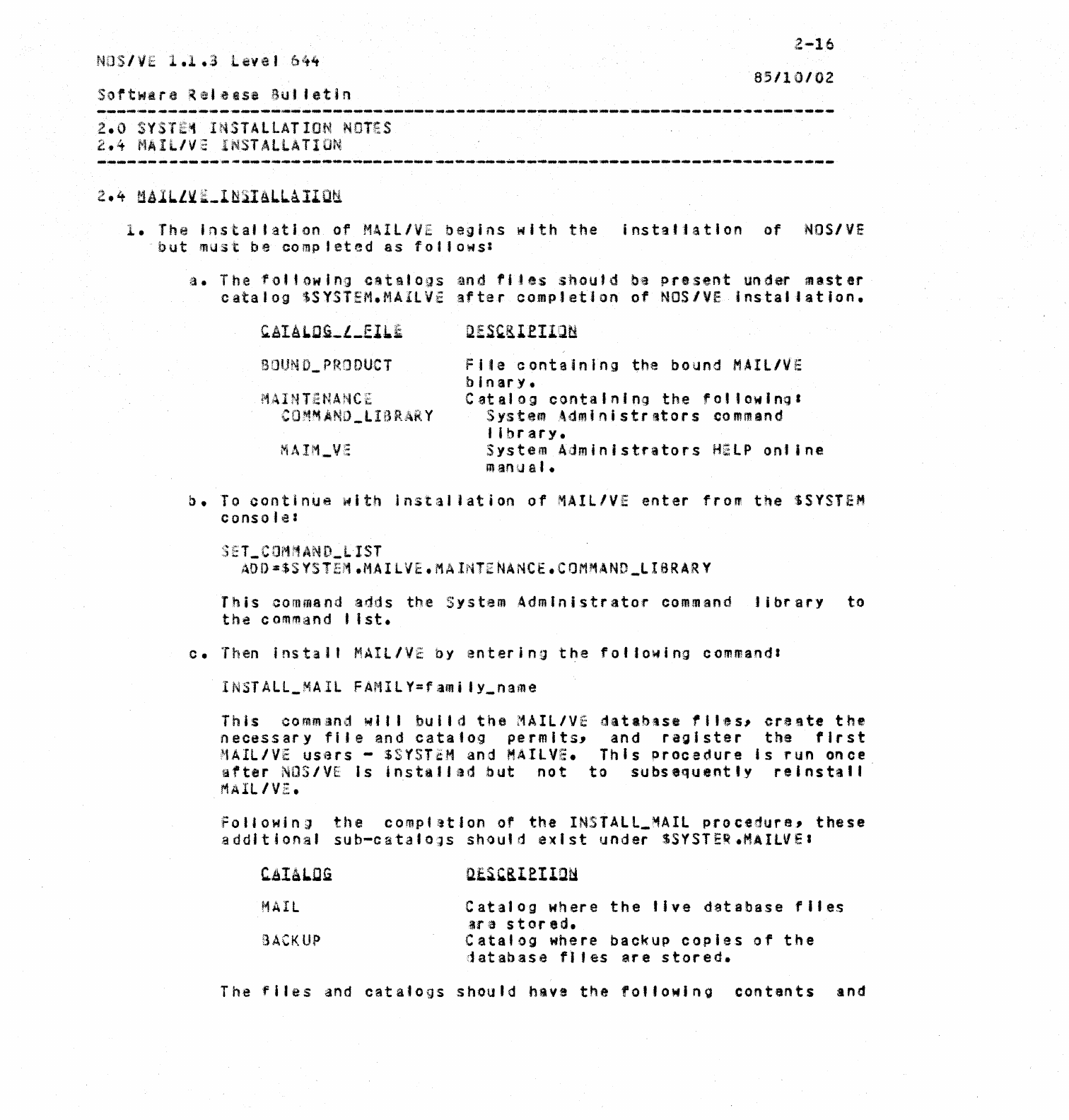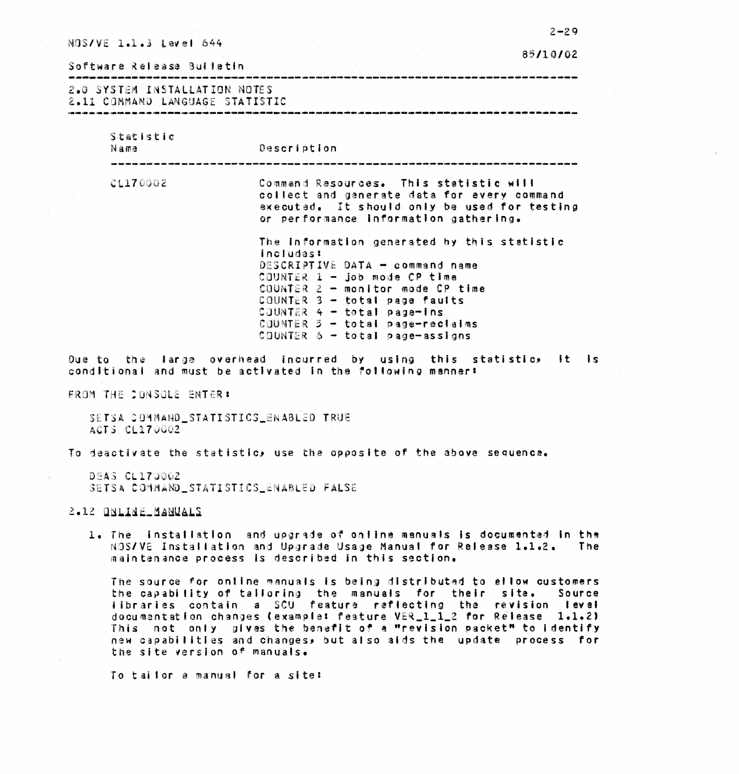 User Manual: NOS_VE_1.1.3_Level_644_Software_Rel_Bulletin_Oct85