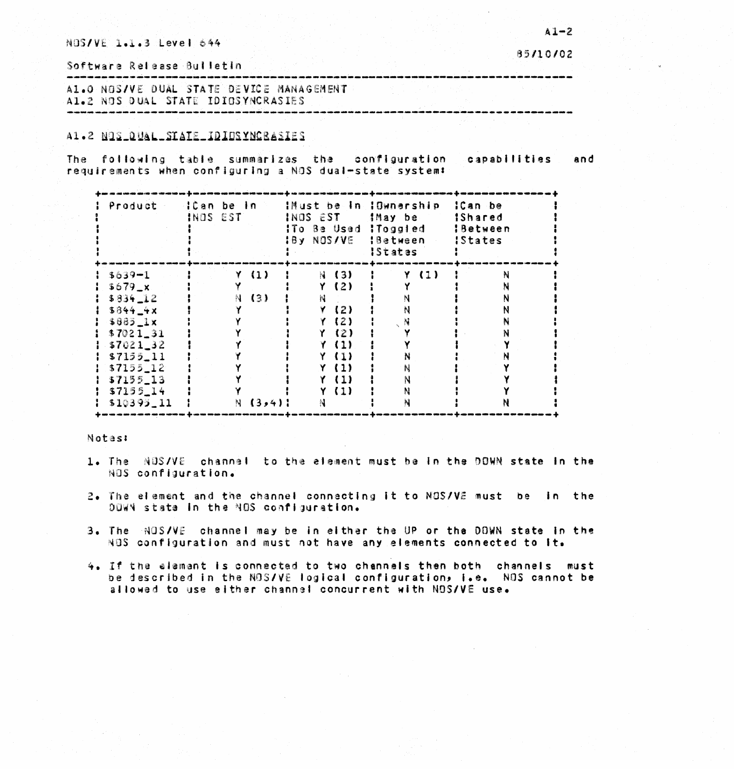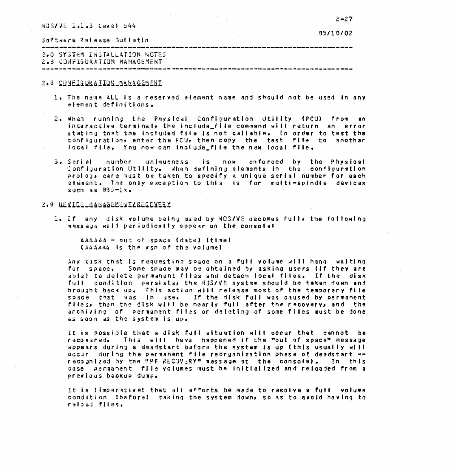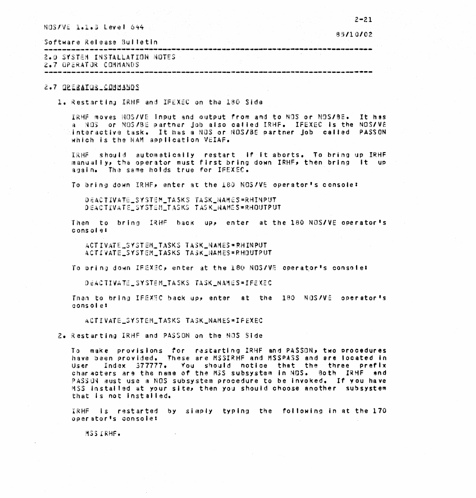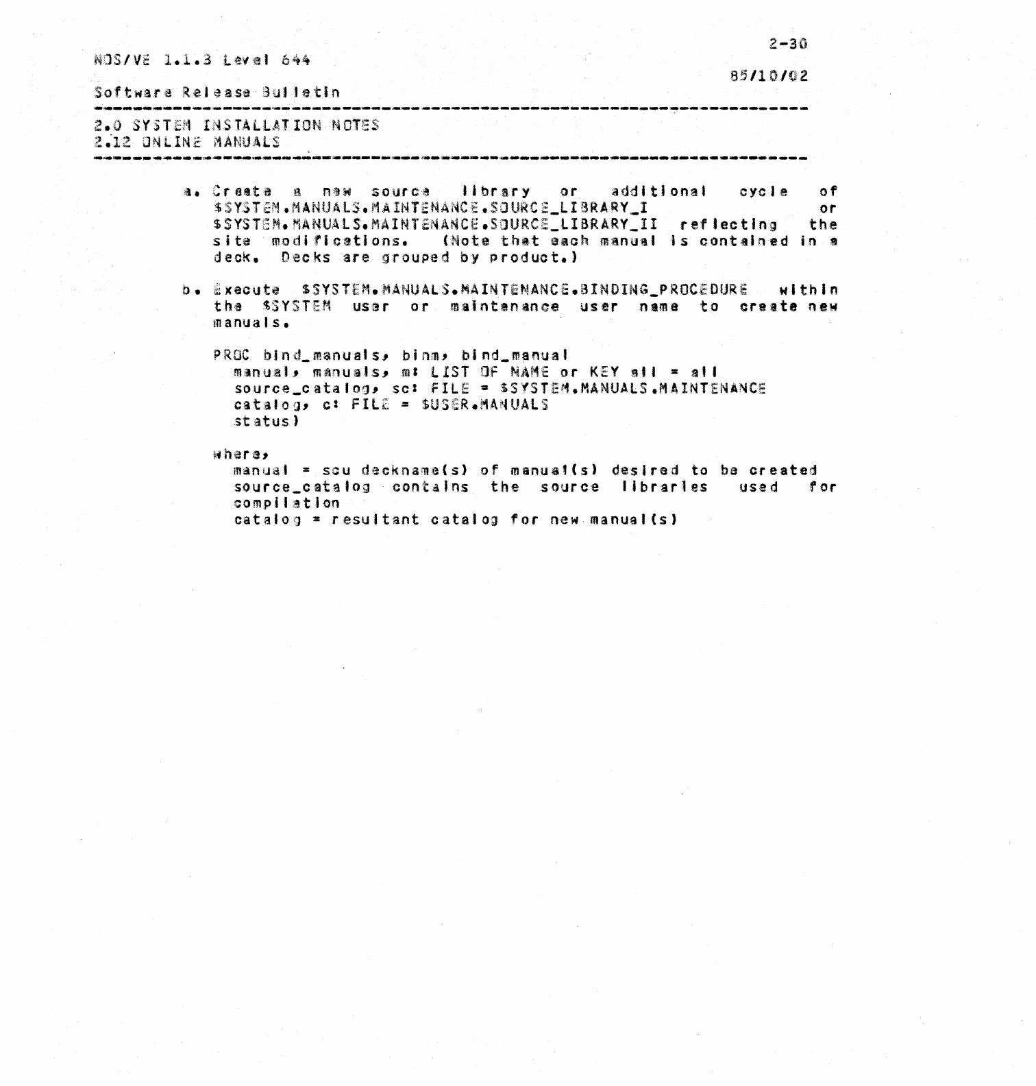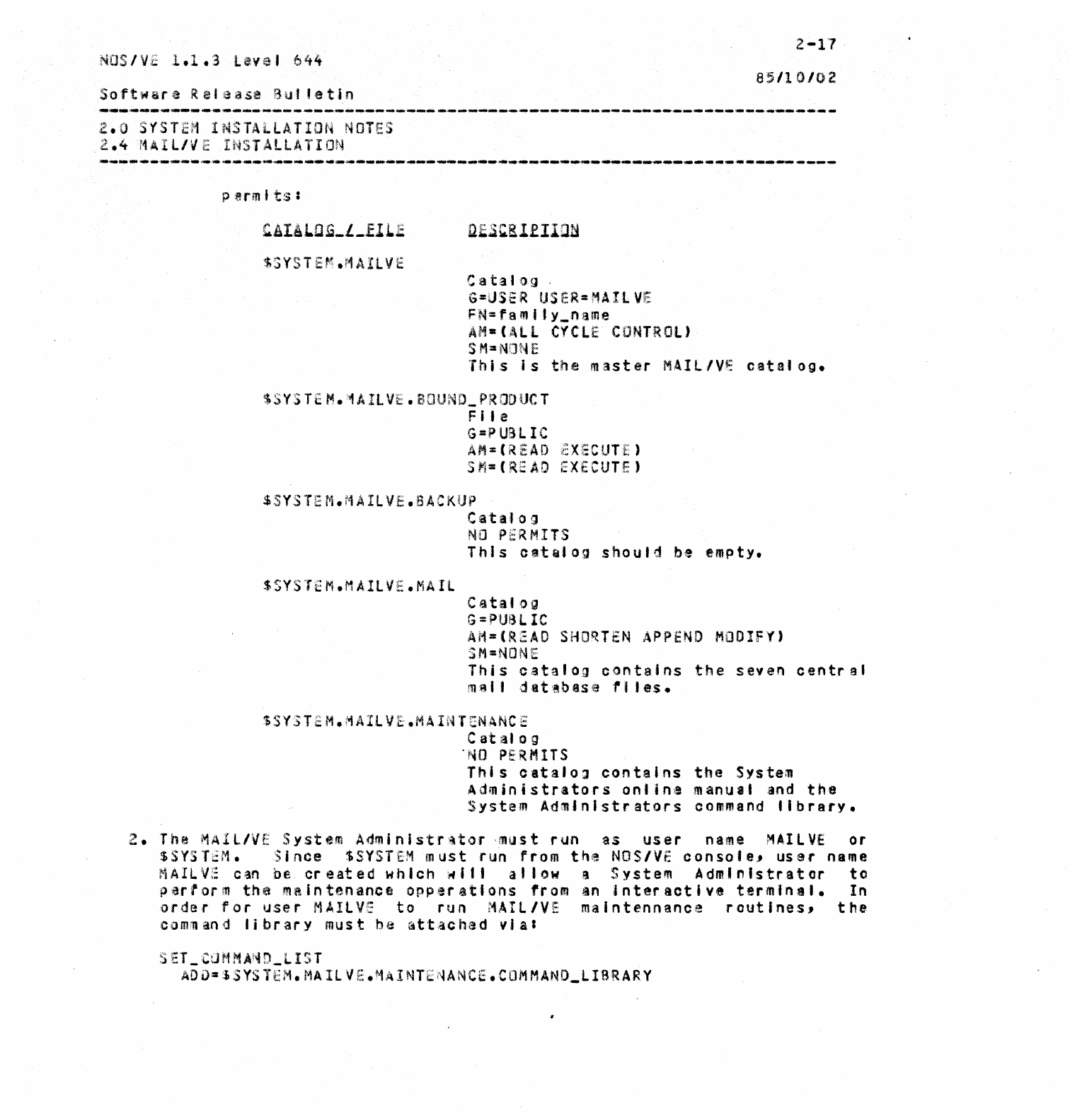 User Manual: NOS_VE_1.1.3_Level_644_Software_Rel_Bulletin_Oct85