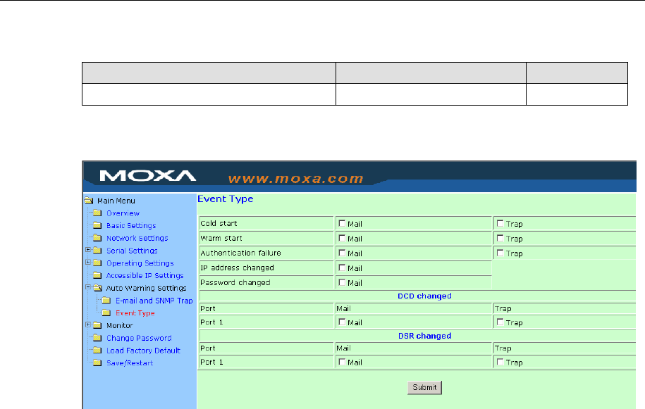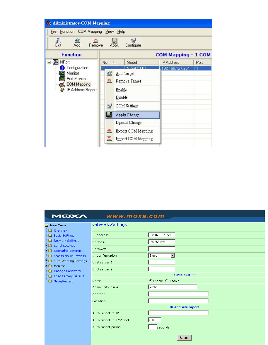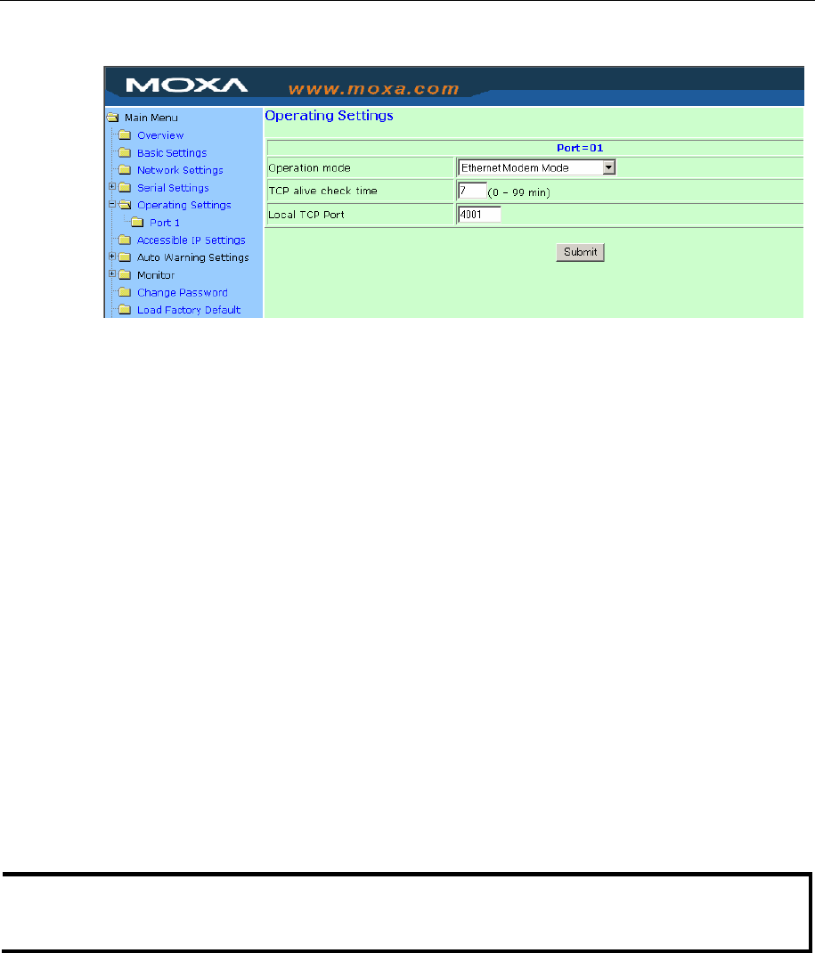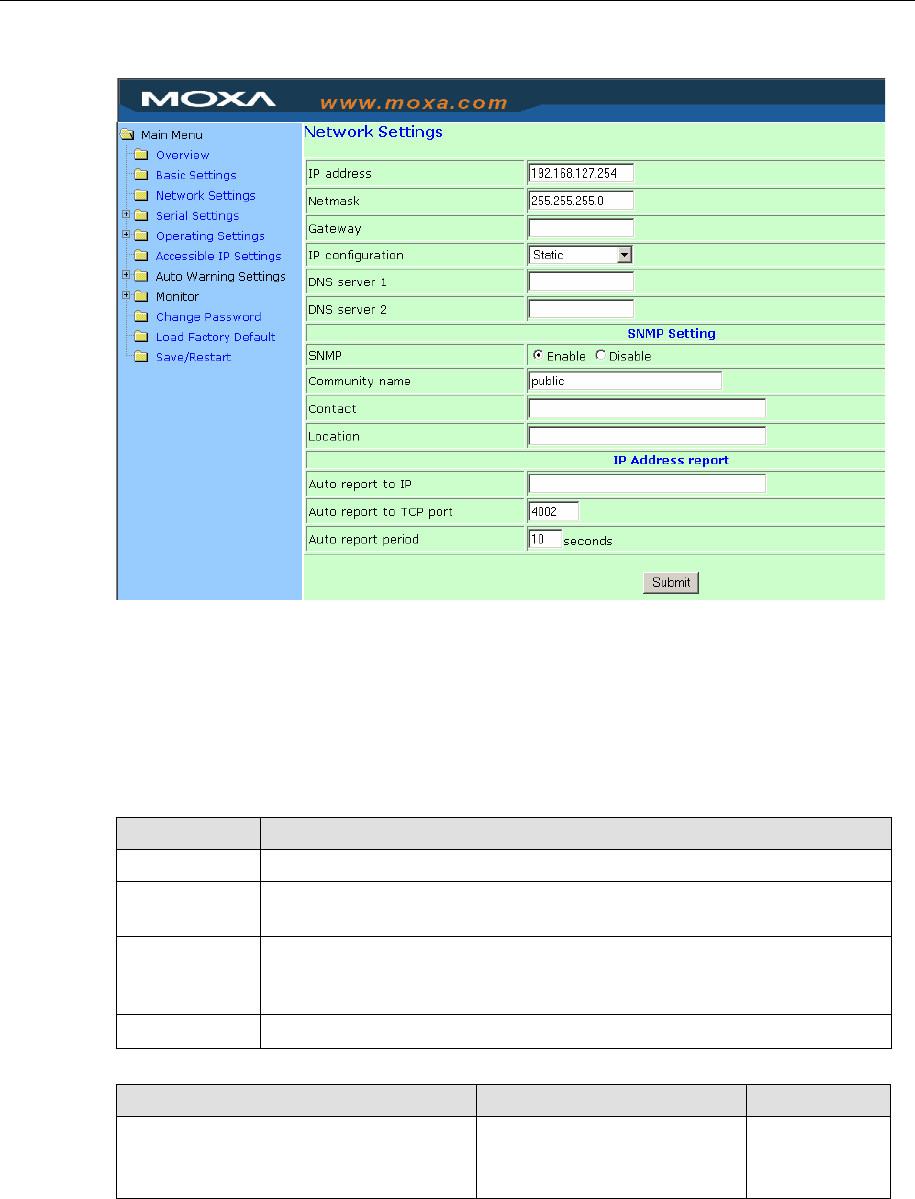 Settings via Web browser. The figure below is NPort Web console configuration window. Enter
