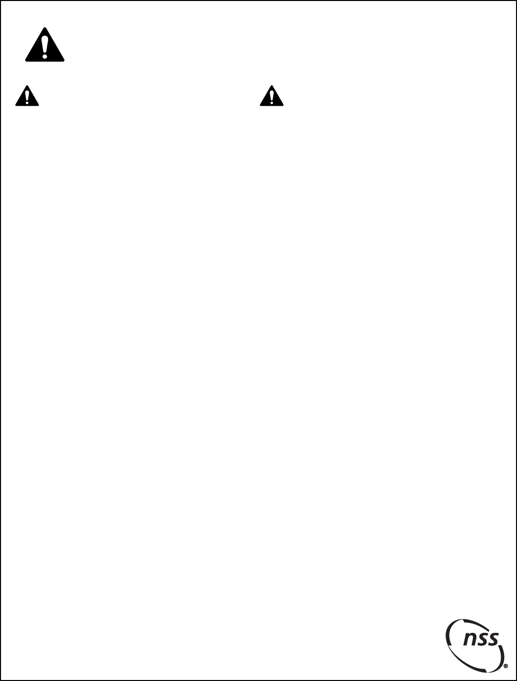 ALL REPAIR SERVICE MUST BE PERFORMED BY AN NSS AUTHORIZED DISTRIBUTOR/