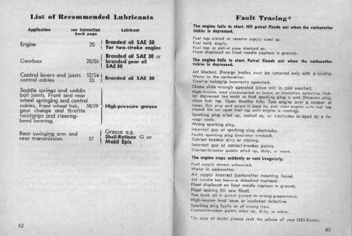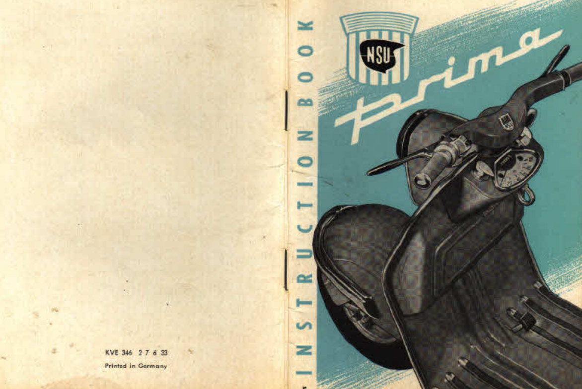 User Manual: NSU 150 Prima Scooter Owners Maintenance Instruction Manual 1956