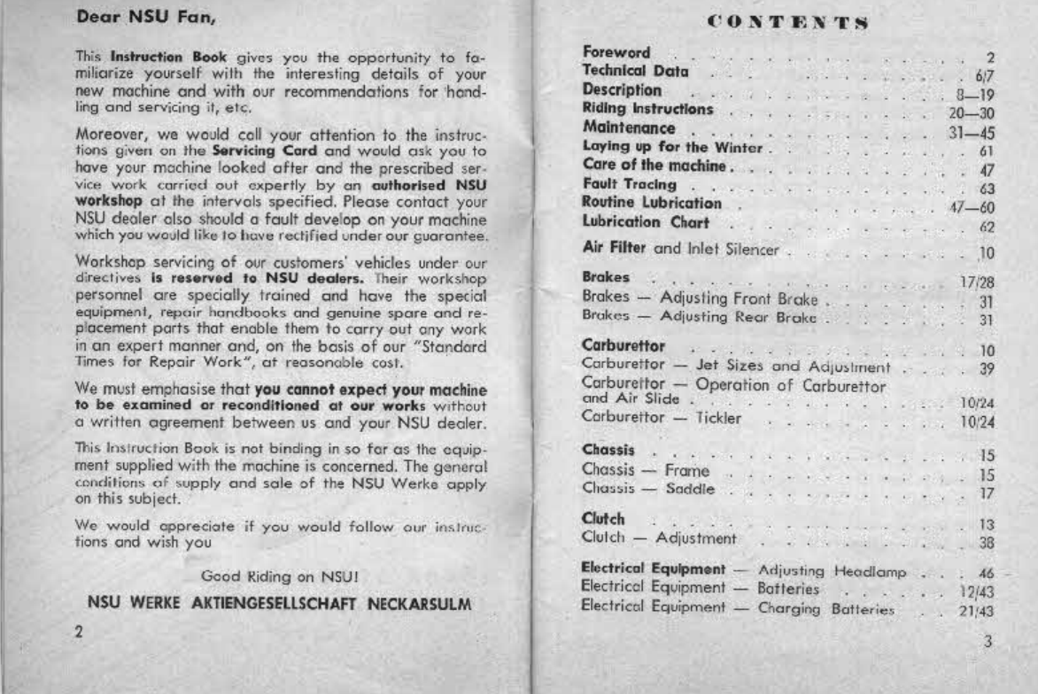 NSU 150 Prima Scooter Owners Maintenance Instruction Manual 1956