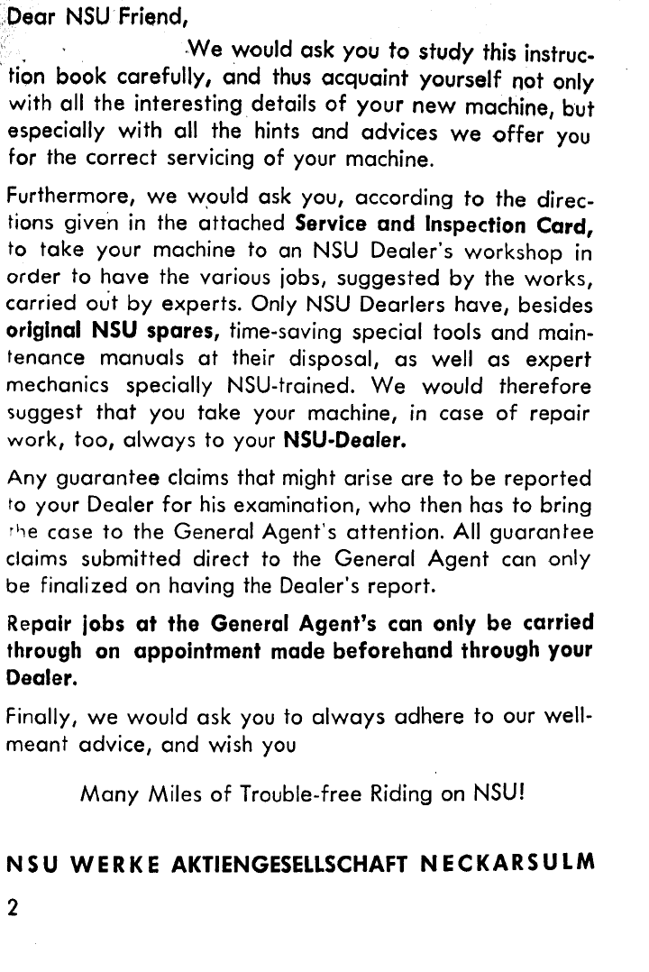 NSU Quickly Owner's Instruction Manual May 1957 Edition UK Normal Special Luxe Owners Maintenance