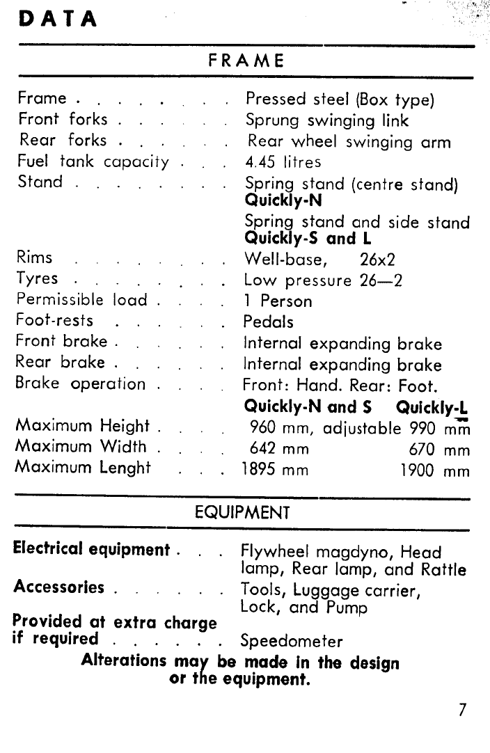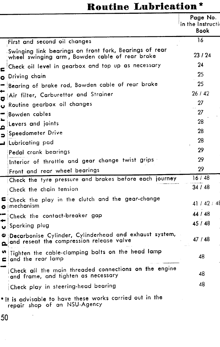 User Manual: NSU Quickly Normal Special Luxe Owners Maintenance Instruction Manual 1957