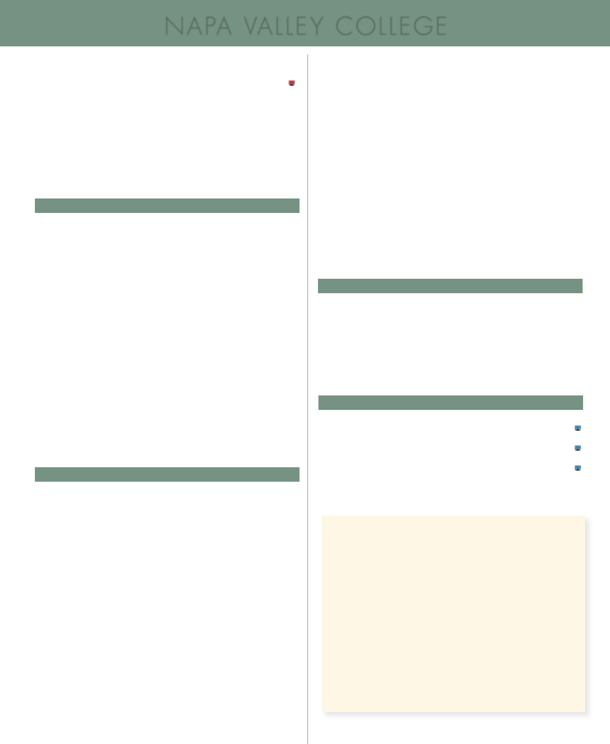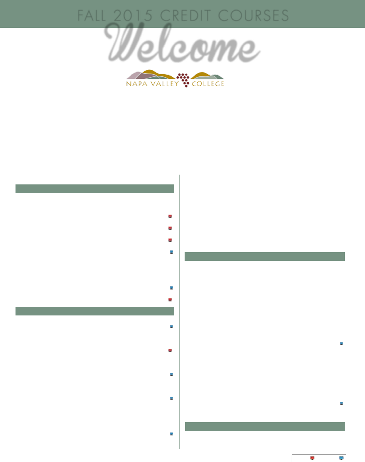 22 Please see our Napa Valley College WebAdvisor on our home webpage for the most current list of courses, expanded