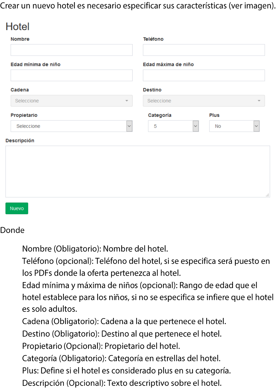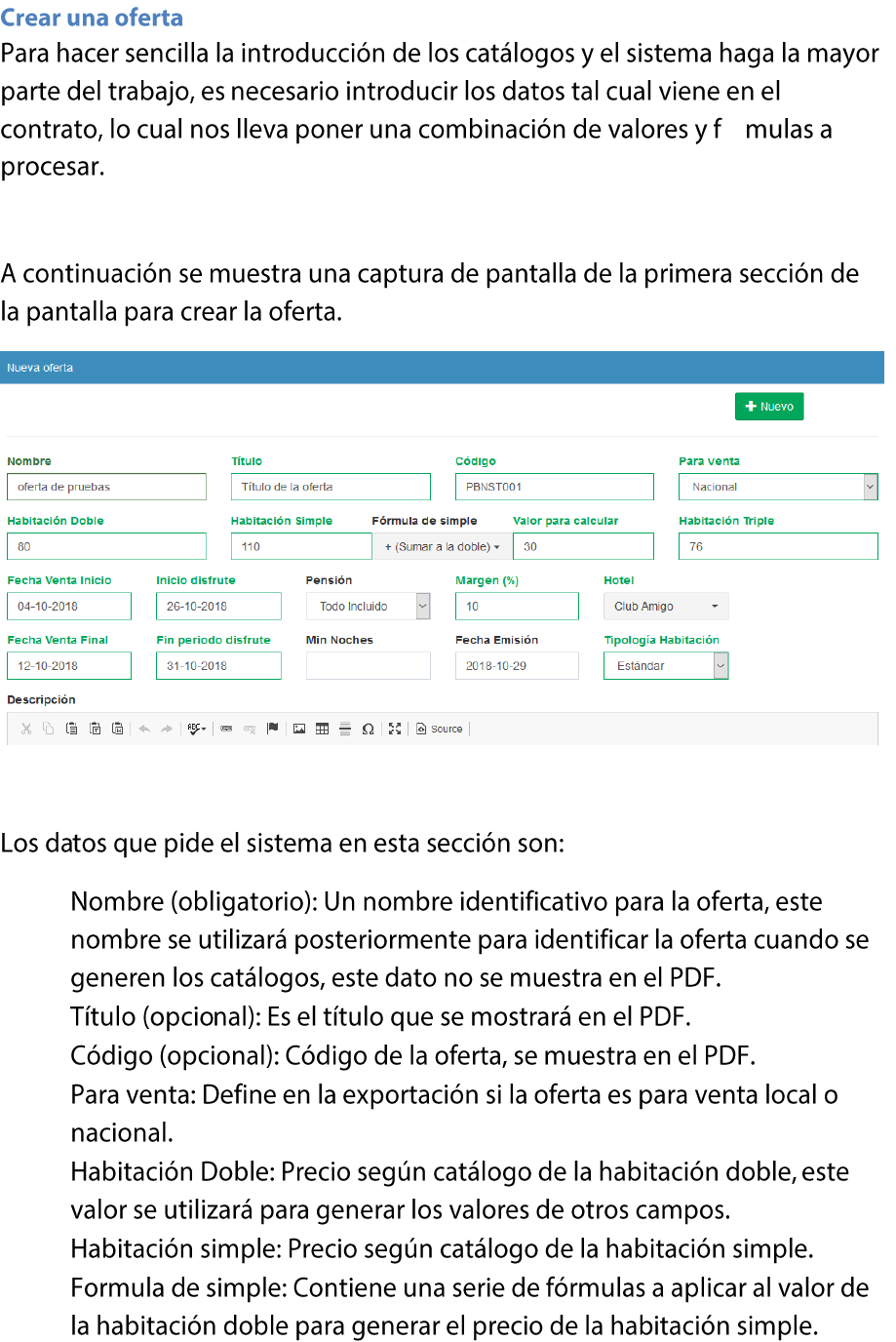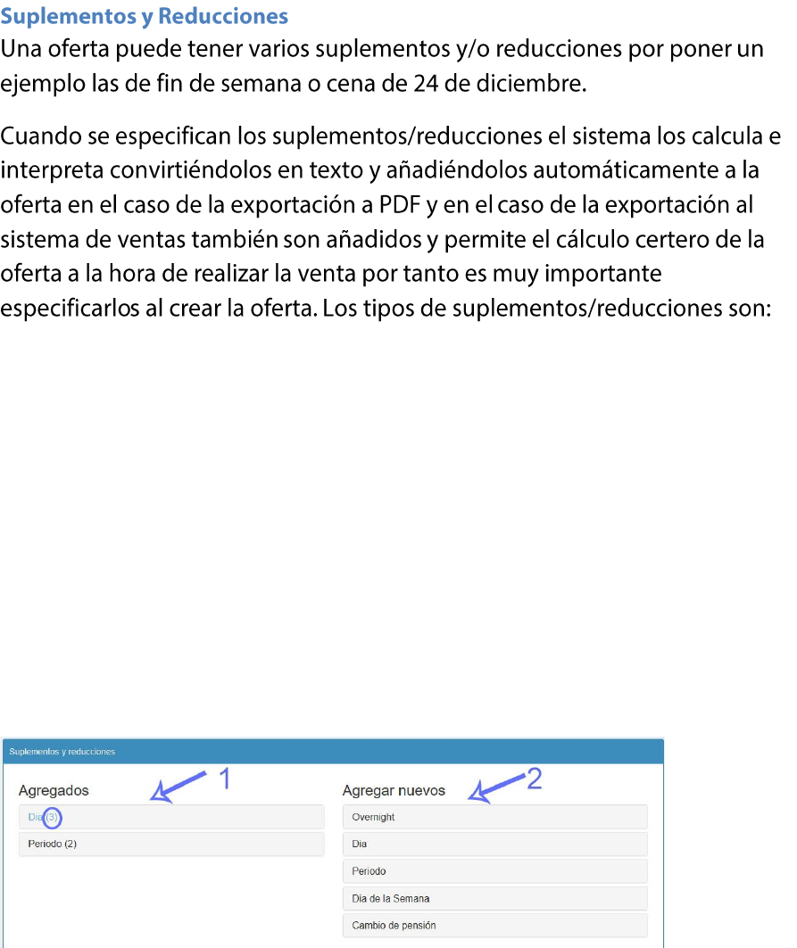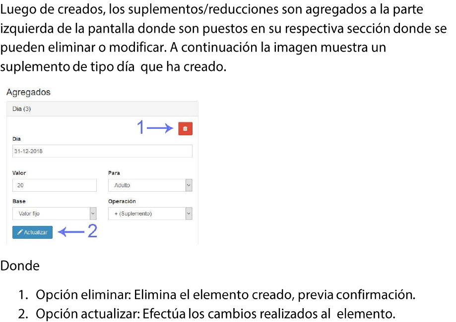 2. Formularios para crear nuevos Suplementos/Reducciones.