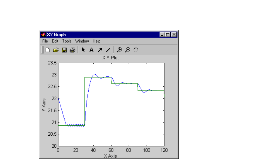 When the simulation is complete, double-click the output y1 block on the right to see the