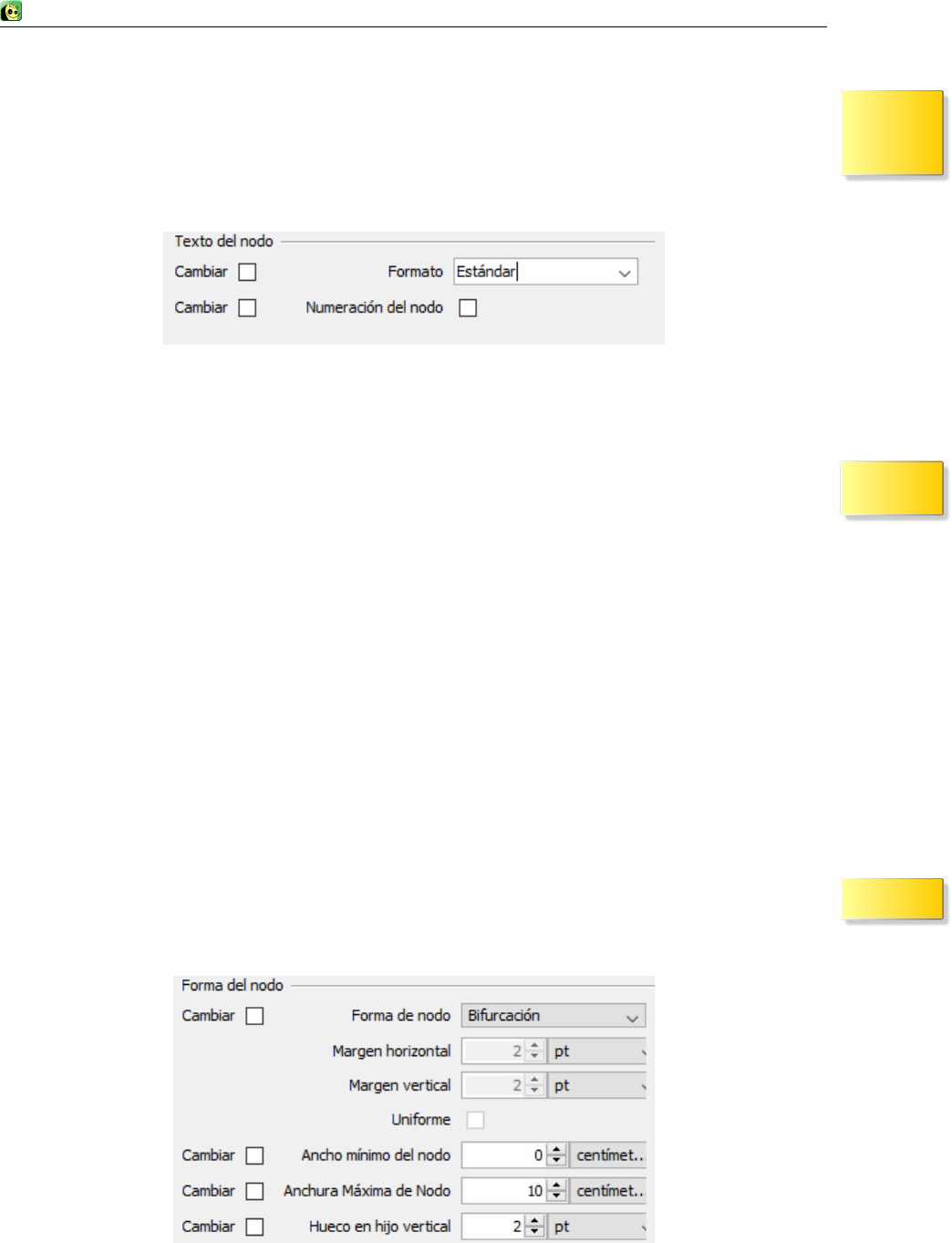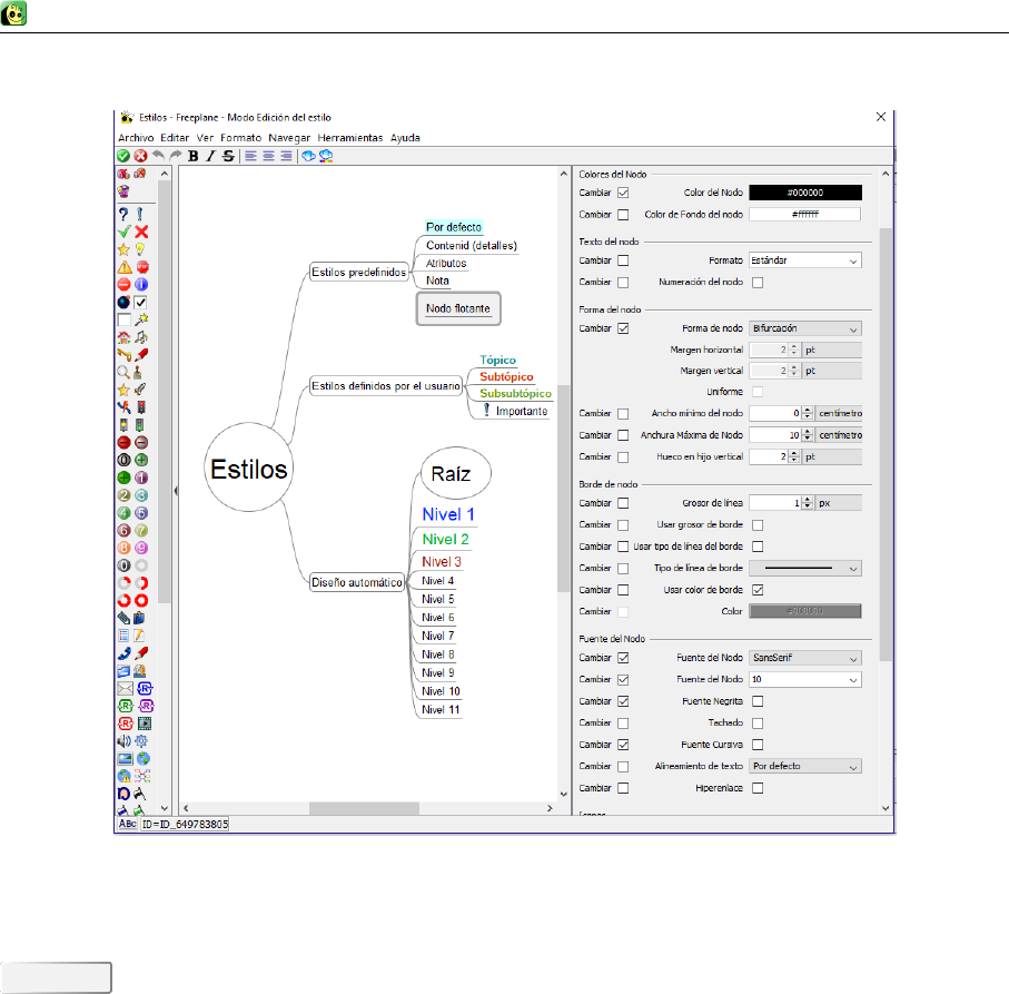 Formato automático: Formato que asigna Freeplane en función de la ubicación de un nodo en el mapa