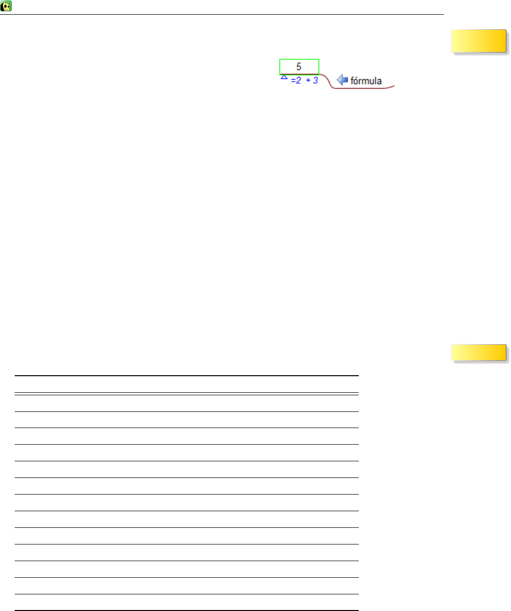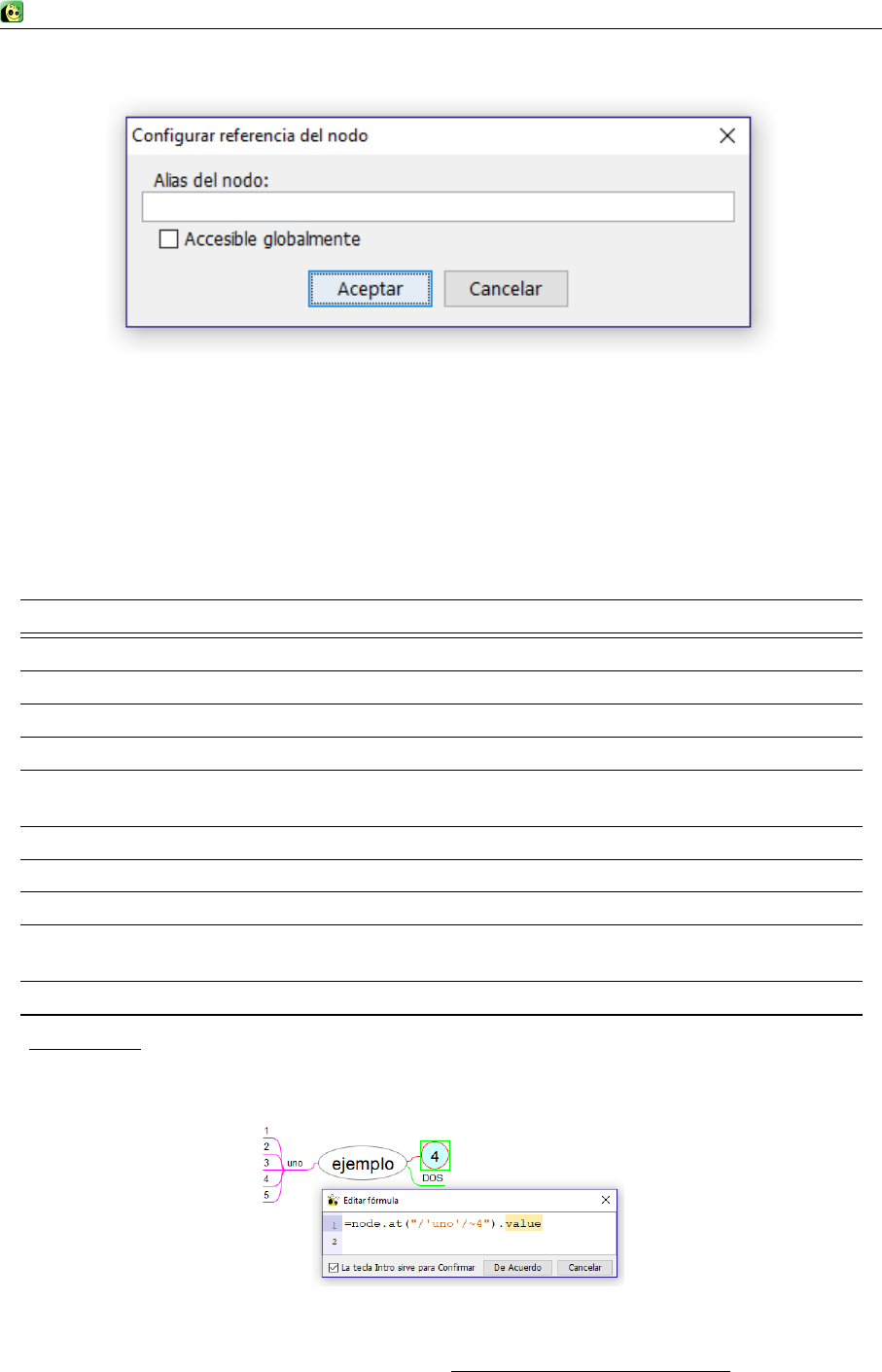 Fórmula: Expresión que calcula freeplane de forma dinámica. Puede incluir referencias a otros nodos,