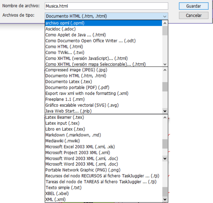 Exportar: Guardar el mapa en un formato distinto al de Freeplane para que pueda ser utilizado por