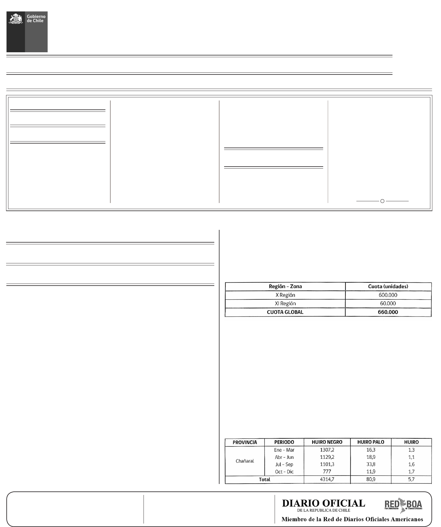 ESTABLECE CUOTA DE CAPTURA PARA LOS RECURSOS HUIRO NE-