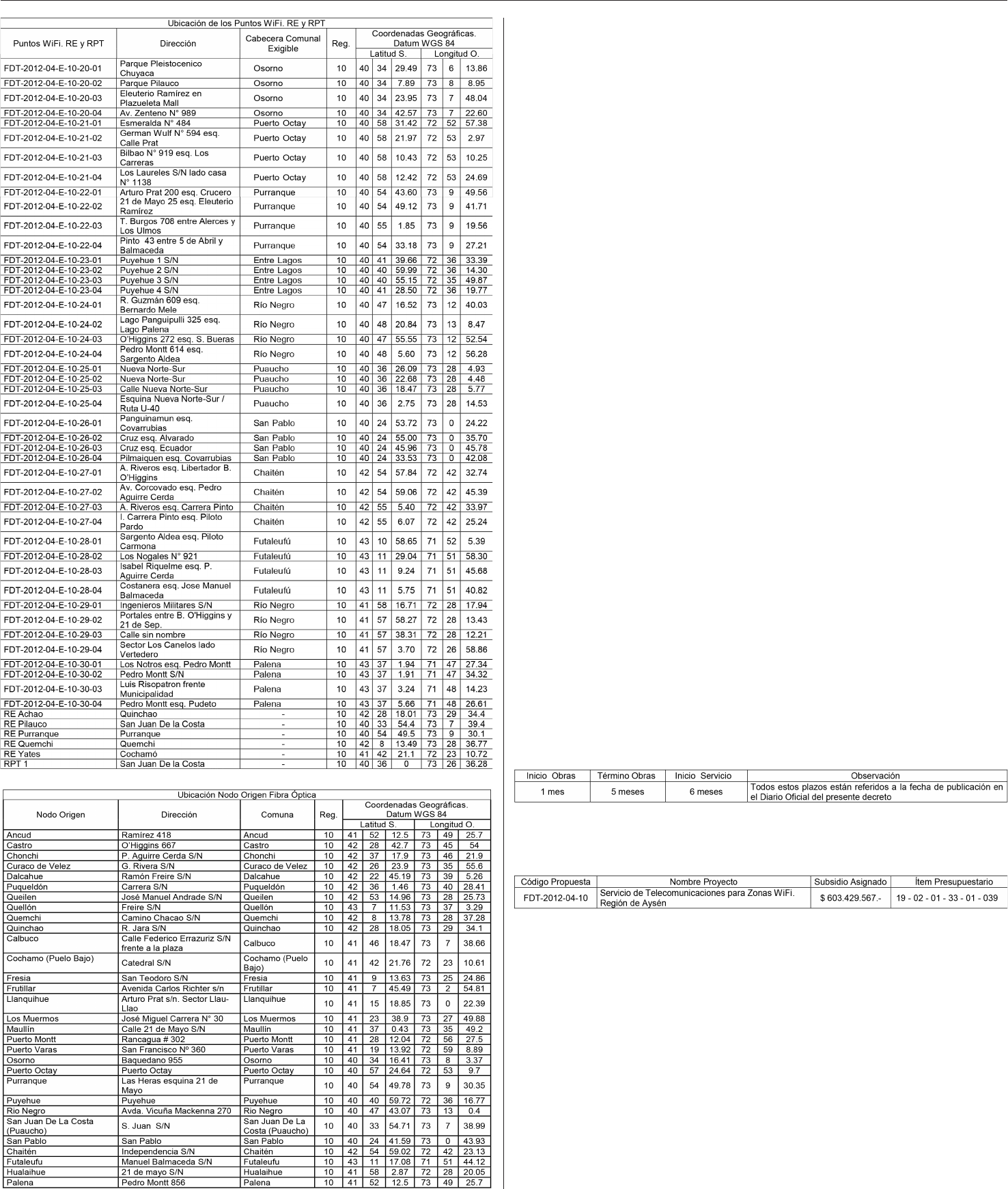 Regiones, ambas inclusive, la que regirá por dos años desde la fecha de publicación