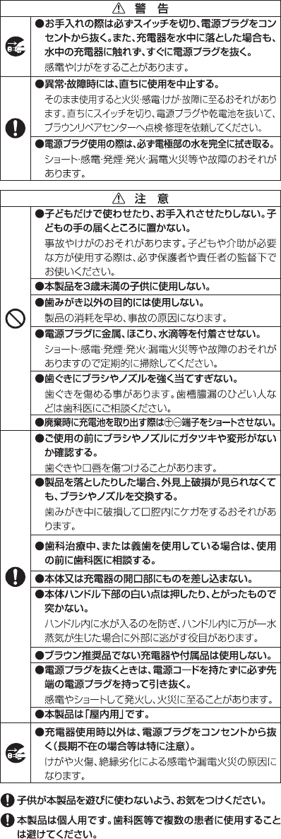 • If the product is dropped, the brush head should be replaced