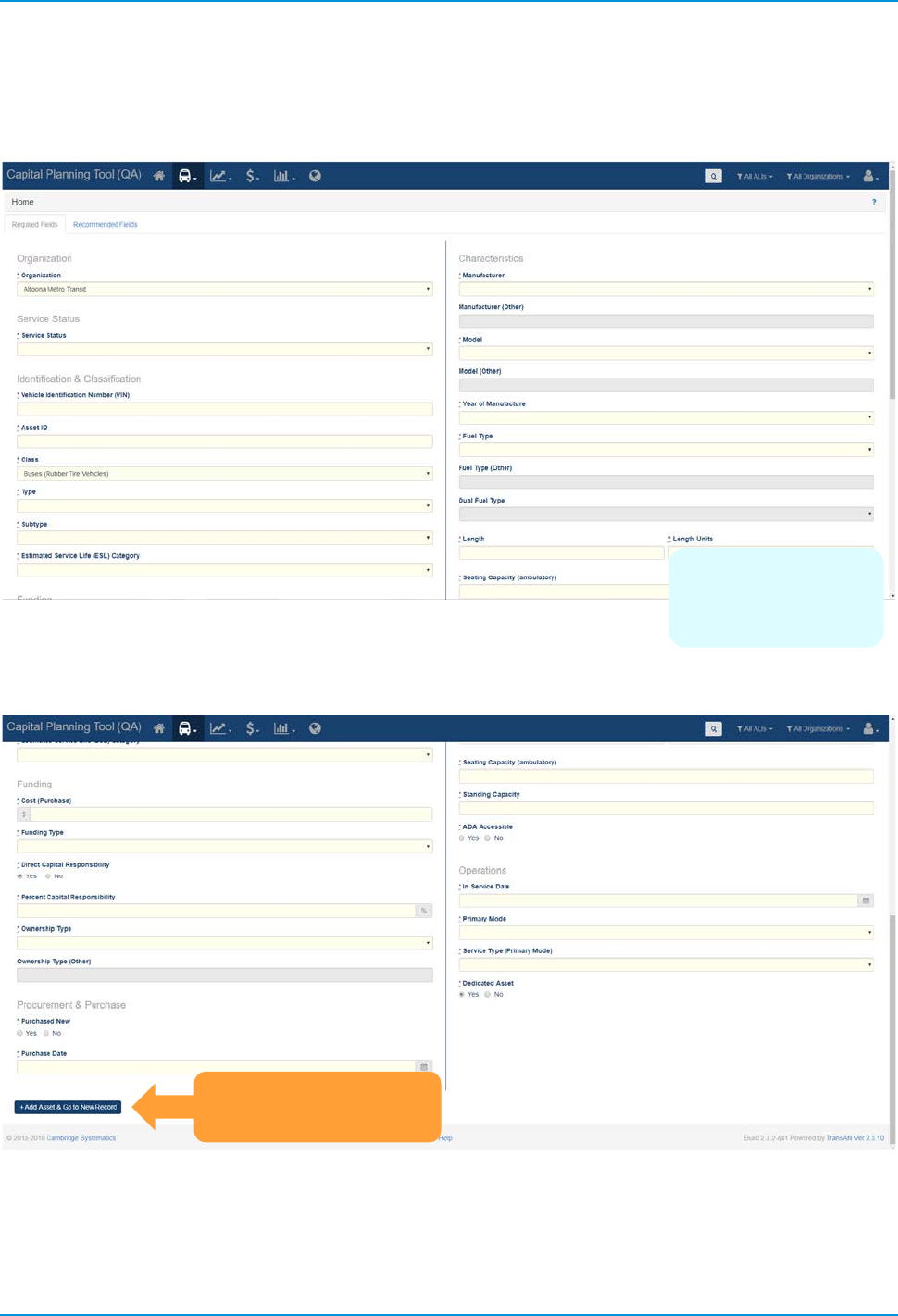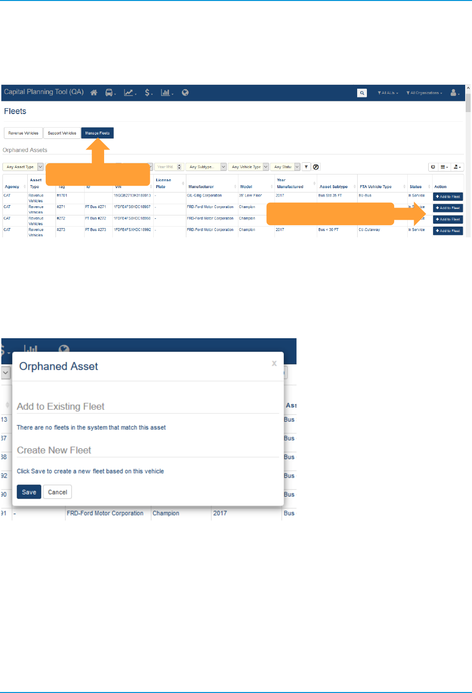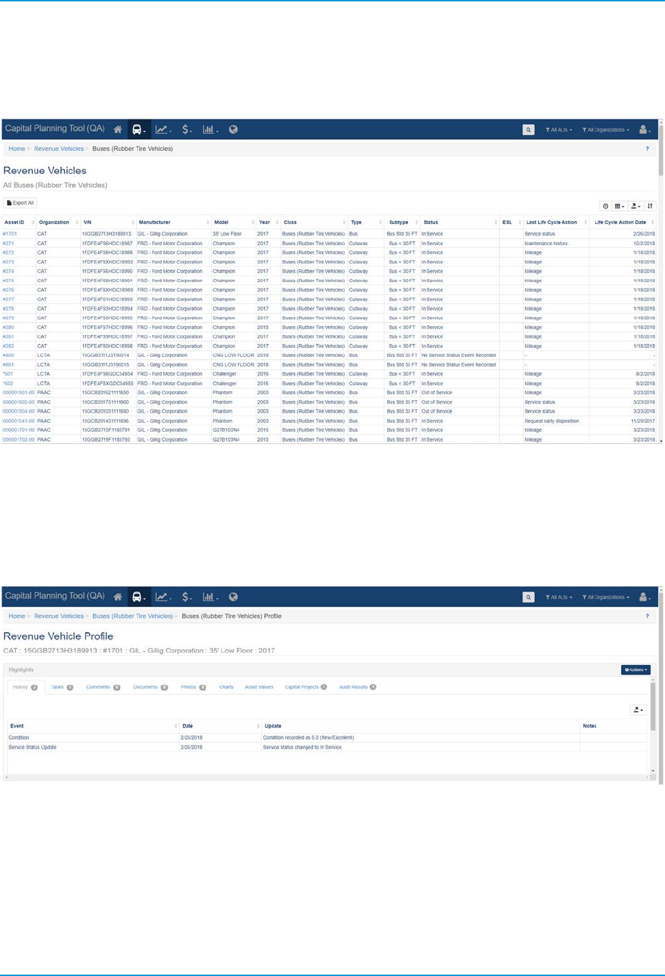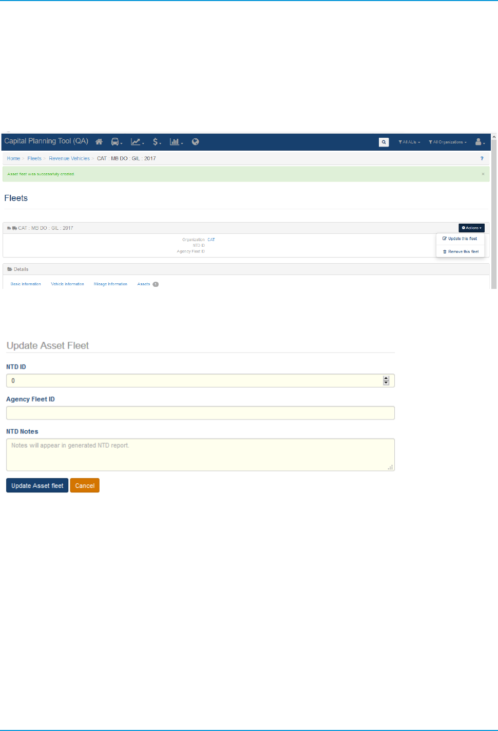• Revenue Vehicles (A-30) — Pulls asset data for revenue vehicles, which are included as part of a fleet.