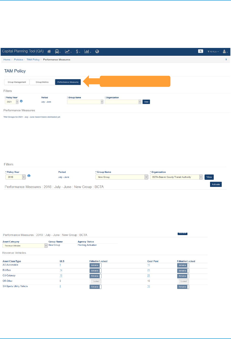 Policy associated with the corresponding NTD Report year, and calculates performance.