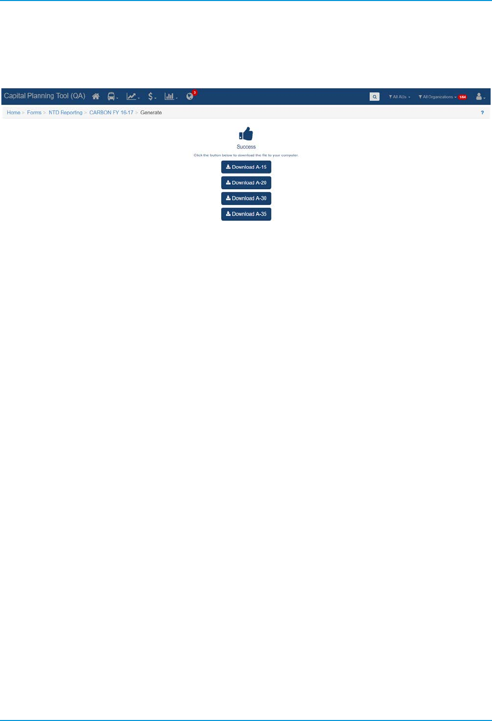 Any NTD reports that have been previously generated can be viewed on the initial report table available