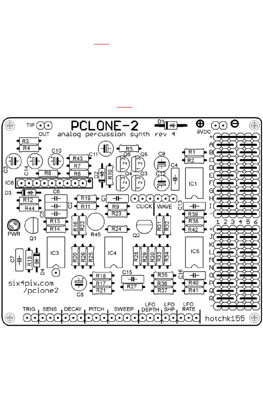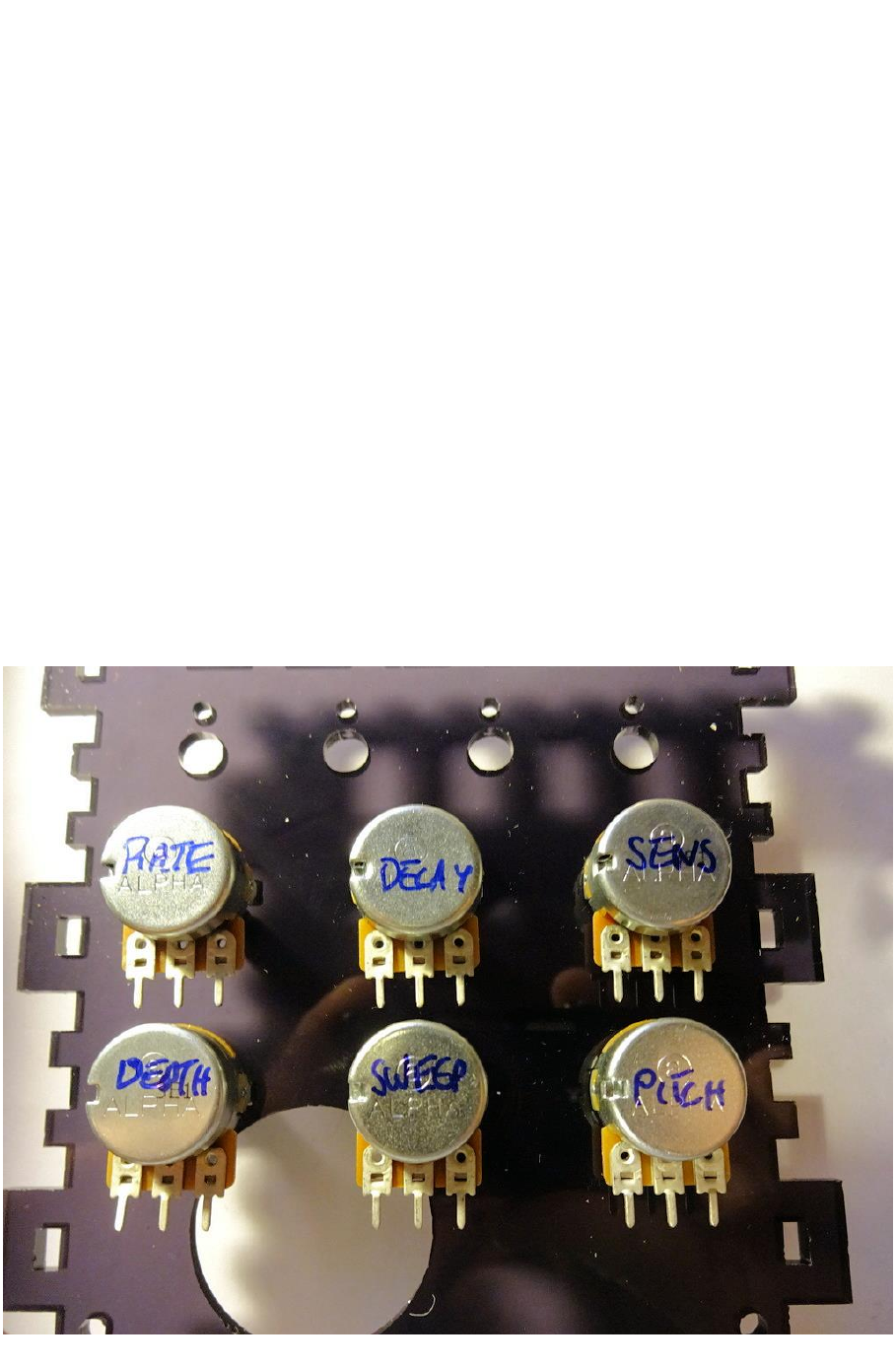 DECAY and SENSITIVITY pots and between SWEEP and PITCH)