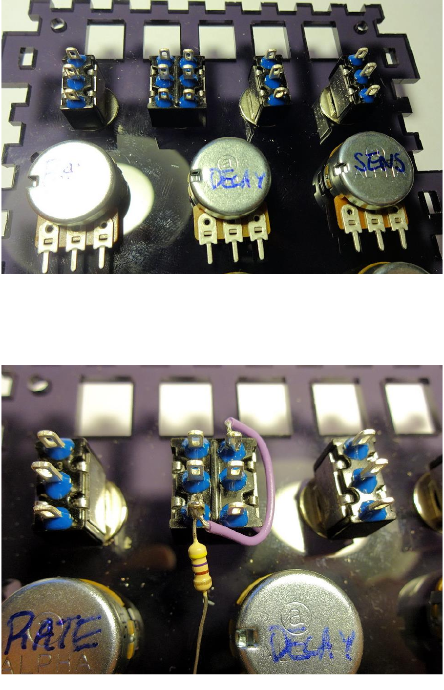 DECAY controls. All the wires are joined from the rear of the PCB.
