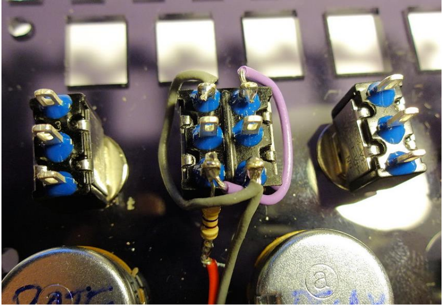 right middle pins of the DPDT switch