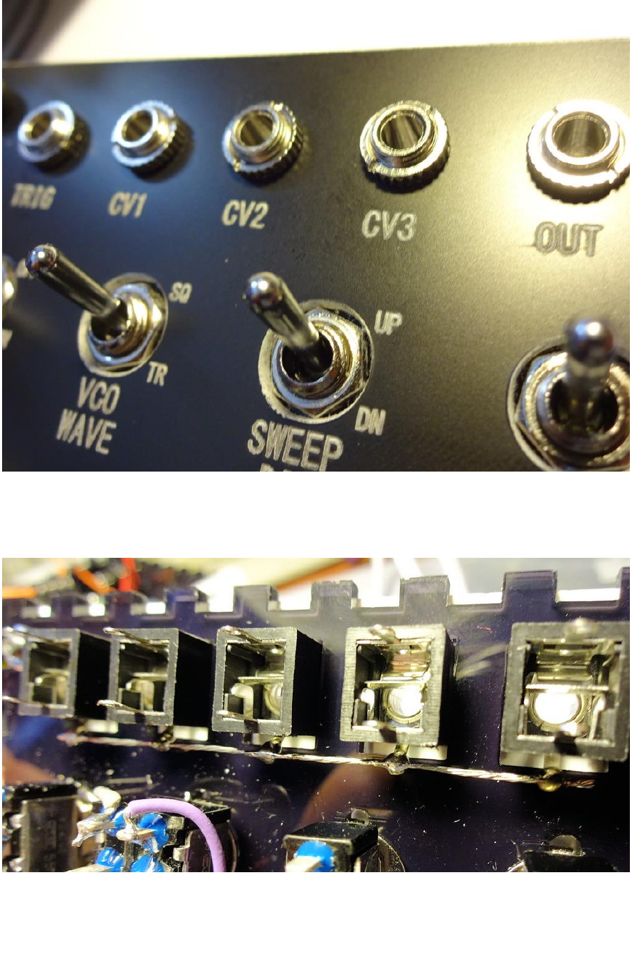 Bundle the wires from the CLICK and VCO WAVE switches (Five wires;