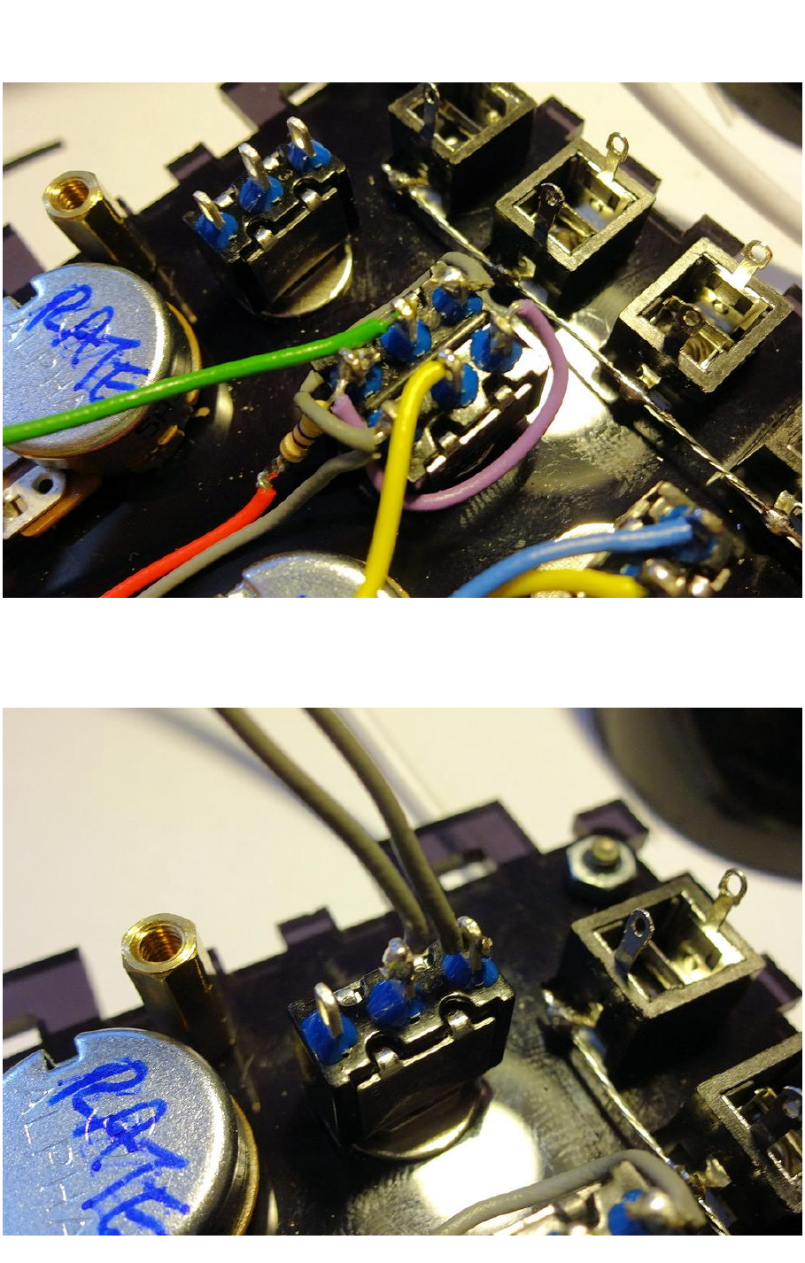 For RATE and also the grey wires from the LFO Shape switch