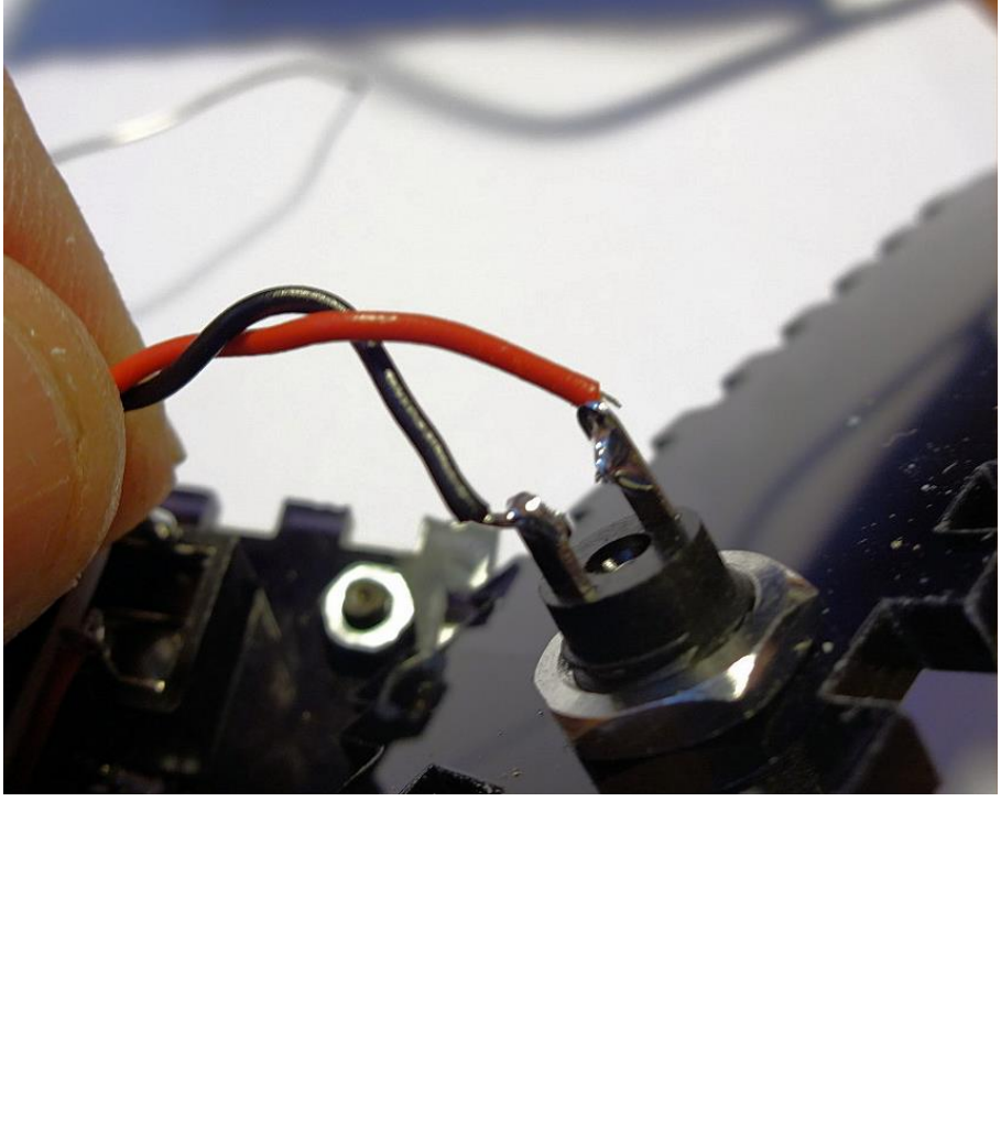 Solder the power leads to the socket. The shorter tab is the central pin of