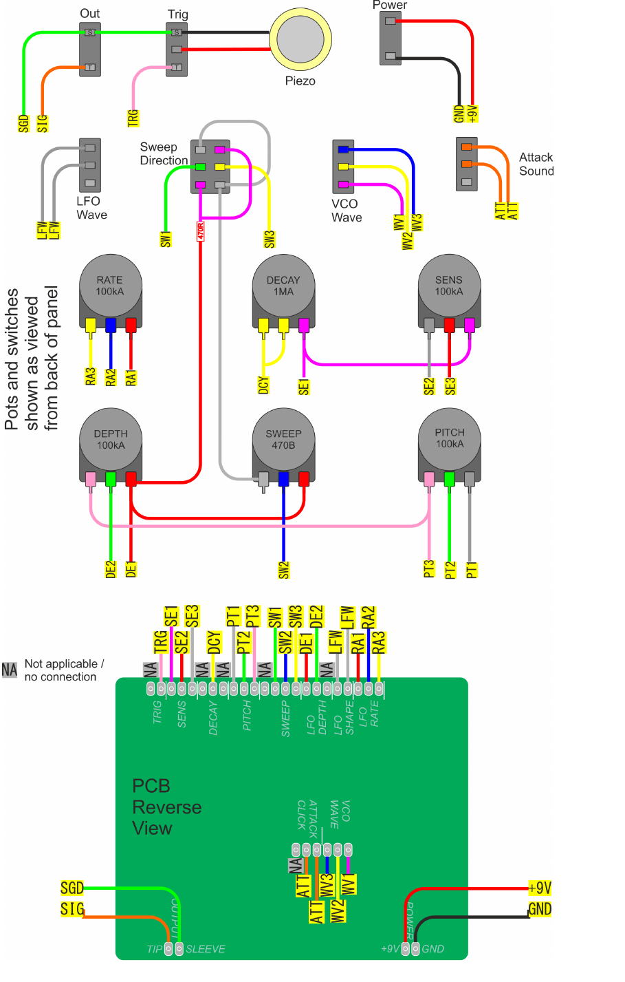 yellow). Route the bundle along between DECAY and SWEEP pots then
