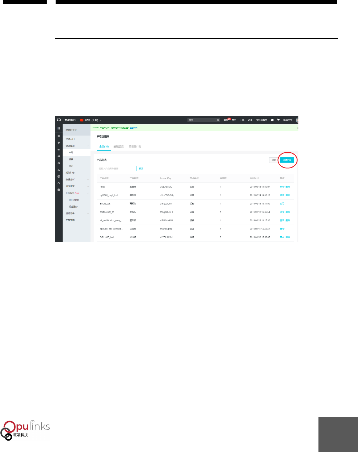 设备的添加将会是 OPL1000 连接阿里云的唯一标识,此时添加设备后会生成连接阿里云的三元组,