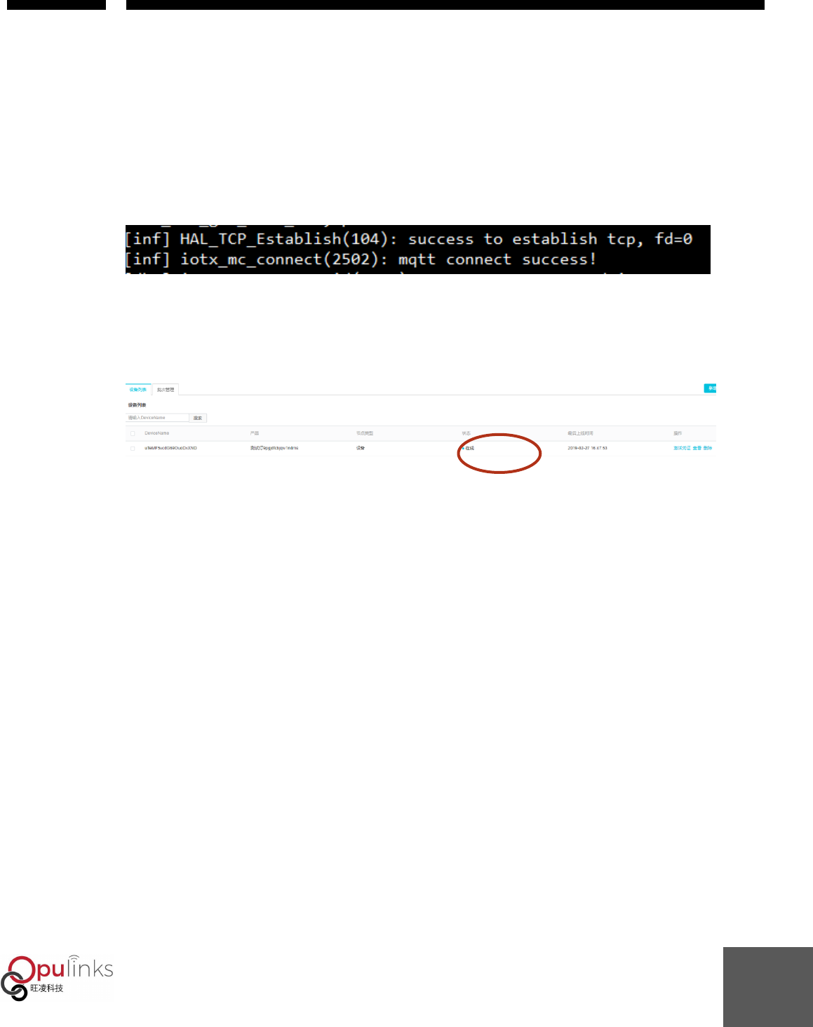OPL1000 与阿里云通过 TCP 协议连接,数据传输则采用的是 MQTT(v3.1)传输协议。