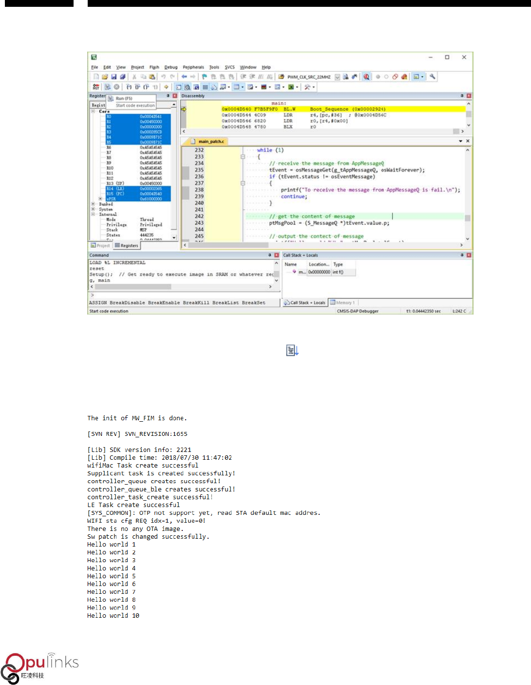 5. As OPL1000 is powered on or reset. Execute user APP, and confirm execution result through
