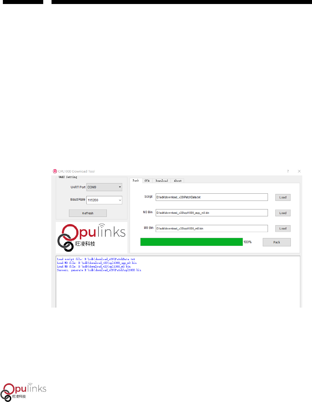 UART Port, and click “Download” button, and resetting OPL1000 DEVKIT within 5 seconds, before