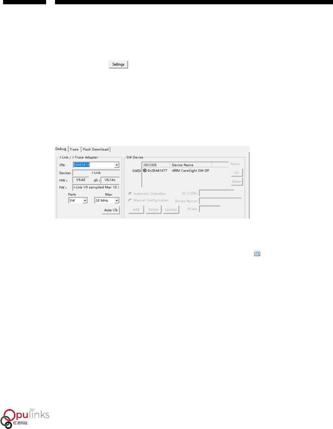 For debugging port, select the port of JLINK / J-TRACE Cortex port, and if users use other