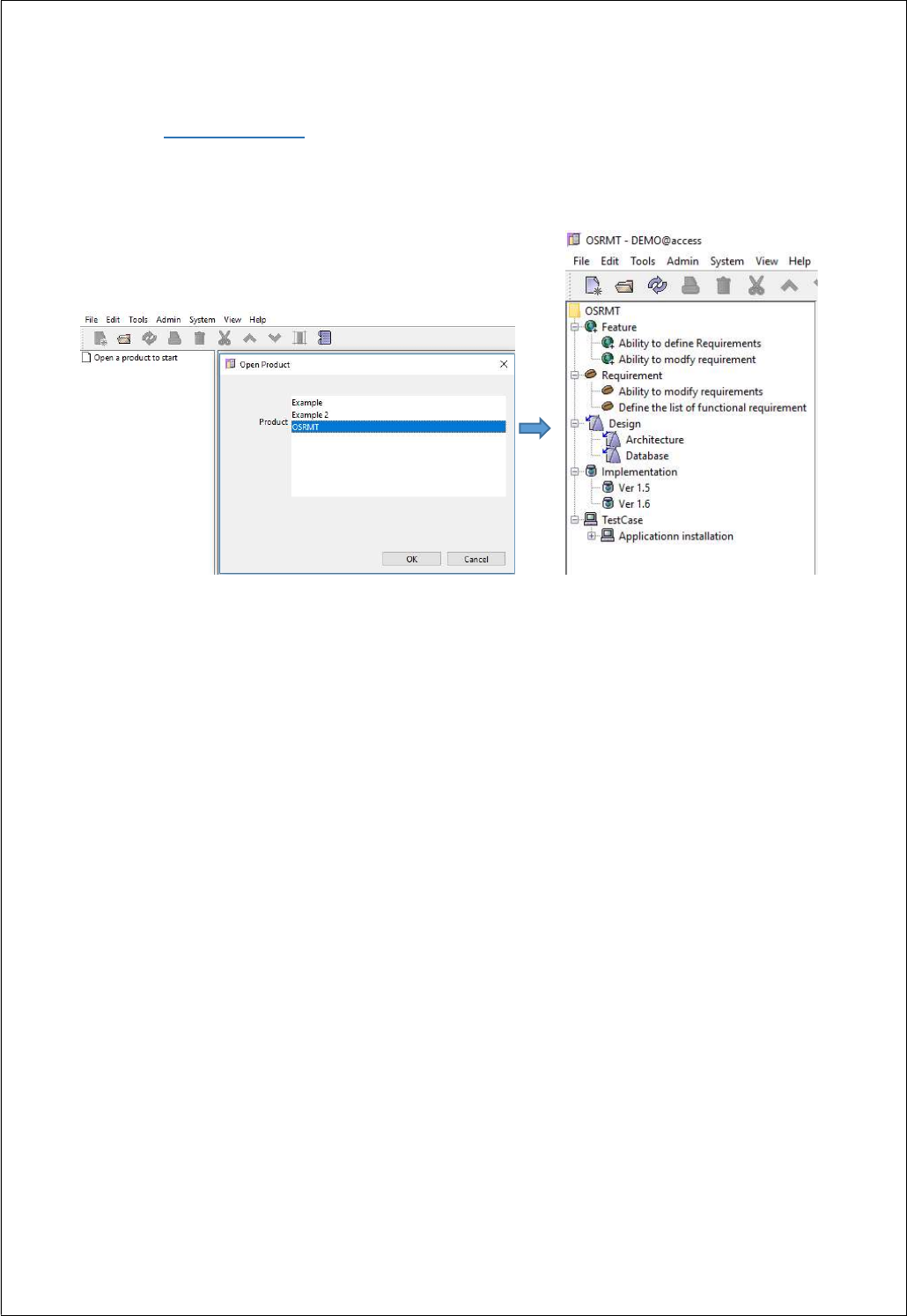 The Open Source Requirements Management Tool (OSRMT) can be started in the