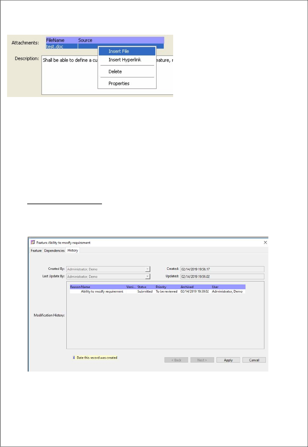 Navigating to a branch in the requirements tree will enable the option to