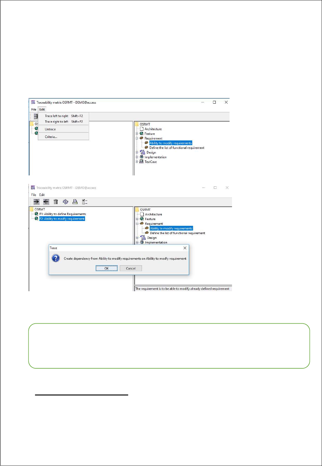 dependency or traceability tree. To change the display of the traceability tree