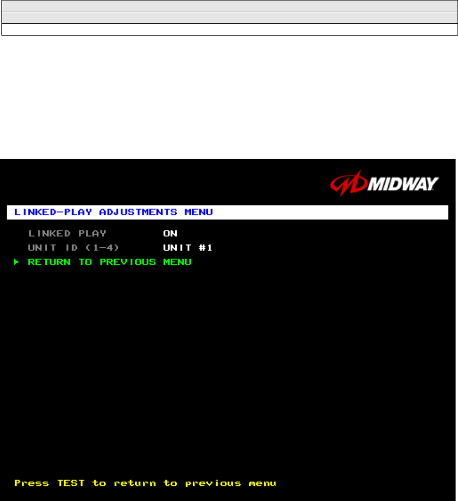 [ ] 3. From each cabinet’s Adjustments Menu, select the Linked Play Adjustments Menu.