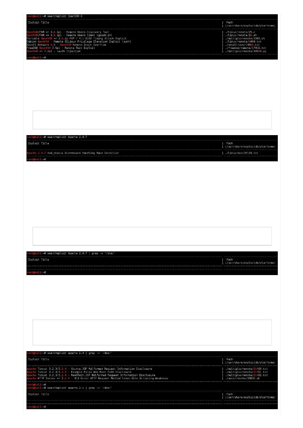 root@kali:~# searchsploit apache 2.x | grep -v '/dos/'