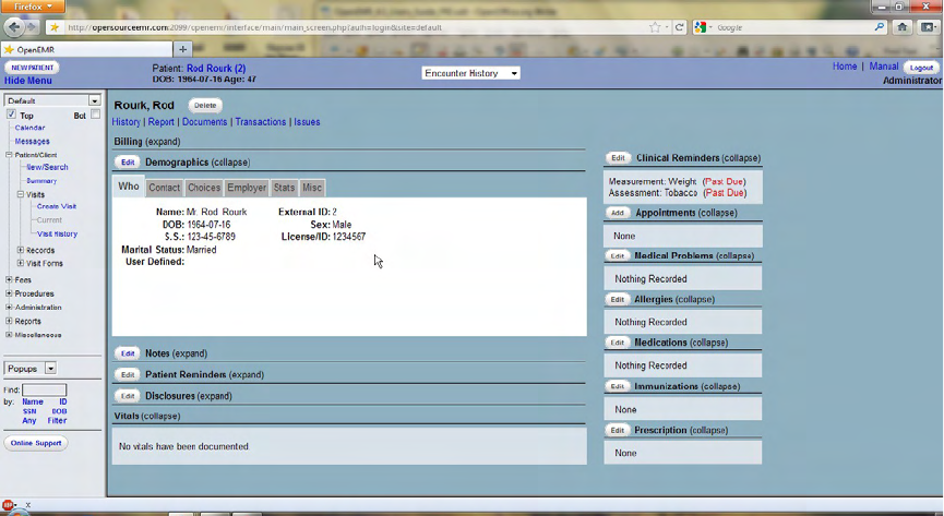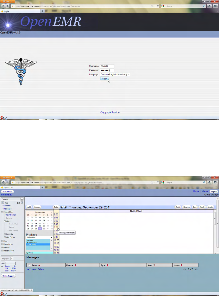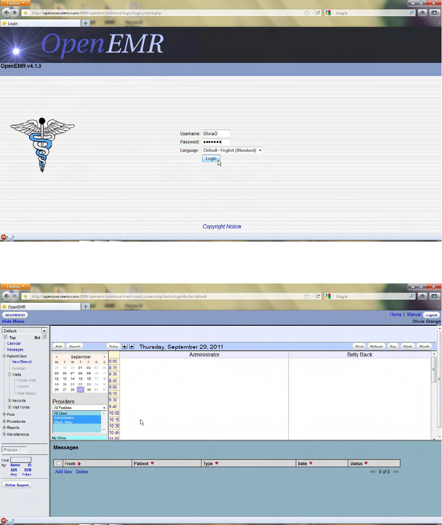 provide you with your own username and password. Note that the OpenEMR login is case-sensitive.
