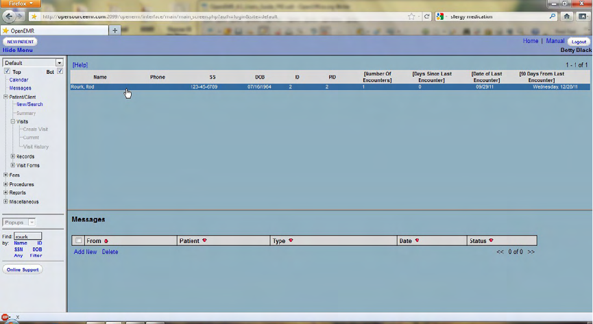 The patient search function is located below the navigation list on the left hand side of the screen, along with a
